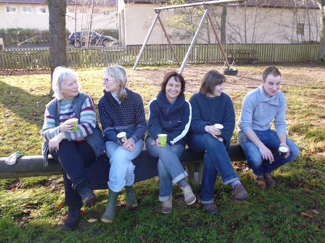 Ende November machten wir uns also daran, die Kastanienblätter einzusammeln. Das Wetter war prima und bei Sonnenschein und gelegentlichen Kaffee- und Glühweinpausen ging die Arbeit vergnügt voran. Die großen Laubhaufen wurden anschließend von den Mitarbeitern des Bauhofes entfernt - vielen Dank dafür!