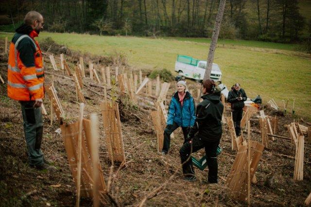 Es gibt viele Waldbesitzer, die den Umbau hin zu einem klimastabilen Mischwald in Angriff nehmen möchten und sich dabei über organisatorische Hilfe freuen. Schließlich bewirtschafteten gerade junge Landwirt*innen ihren Hof oft im Nebenerwerb und sind durch die Doppelbelastung aus Landwirtschaft und Hauptberuf schon recht ausgelastet. Wir möchten die Waldbesitzer*innen mit Herz und Hand unterstützen, indem wir die Beantragung der Förderung, die Koordination mit den Förster*innen, die Materialbeschaffung und die Bepflanzung übernehmen.