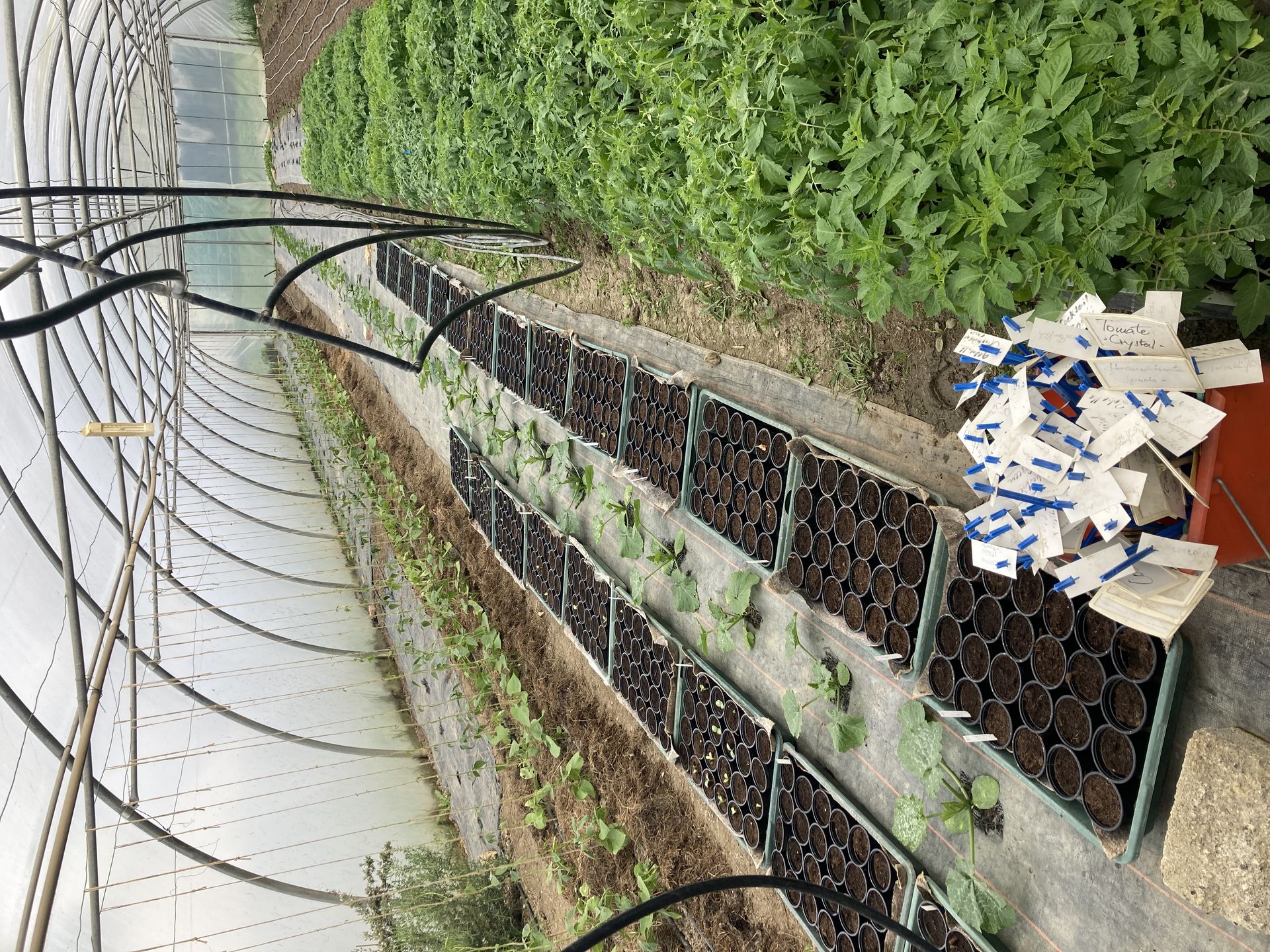 In seinen fünf Gewächshäusern baut er Obst und Gemüse in rotierender Fruchtfolge an. Dabei gärtnert er mit dem Mond und hält sich z.B. konsequent an den Aussaatkalender von Maria Thun.
