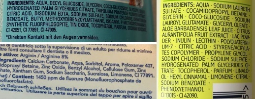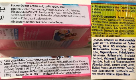 … Farbstoffe in Lebensmitteln und Kosmetika: Wer sich schon einmal die Inhaltsliste auf der Rückseite z.B. von den Lieblingsgummibärchen oder dem Lieblingsduschgel der Kinder angeschaut hat, hat vielleicht auch bemerkt, dass gegen Mitte oder Ende hin eine Buchstaben- und Zahlenkombination aufgeführt wird, aus der nicht sofort erkenntlich ist, um was es sich da handelt. Bei den Lebensmitteln werden (unter anderem) Farbstoffe unter der sogenannten E-Nummer gelistet (Bild 1), in der Kosmetik werden Farbstoffe mit einer sogenannten CI-Nummer geführt (Colour Index, Bild 2).