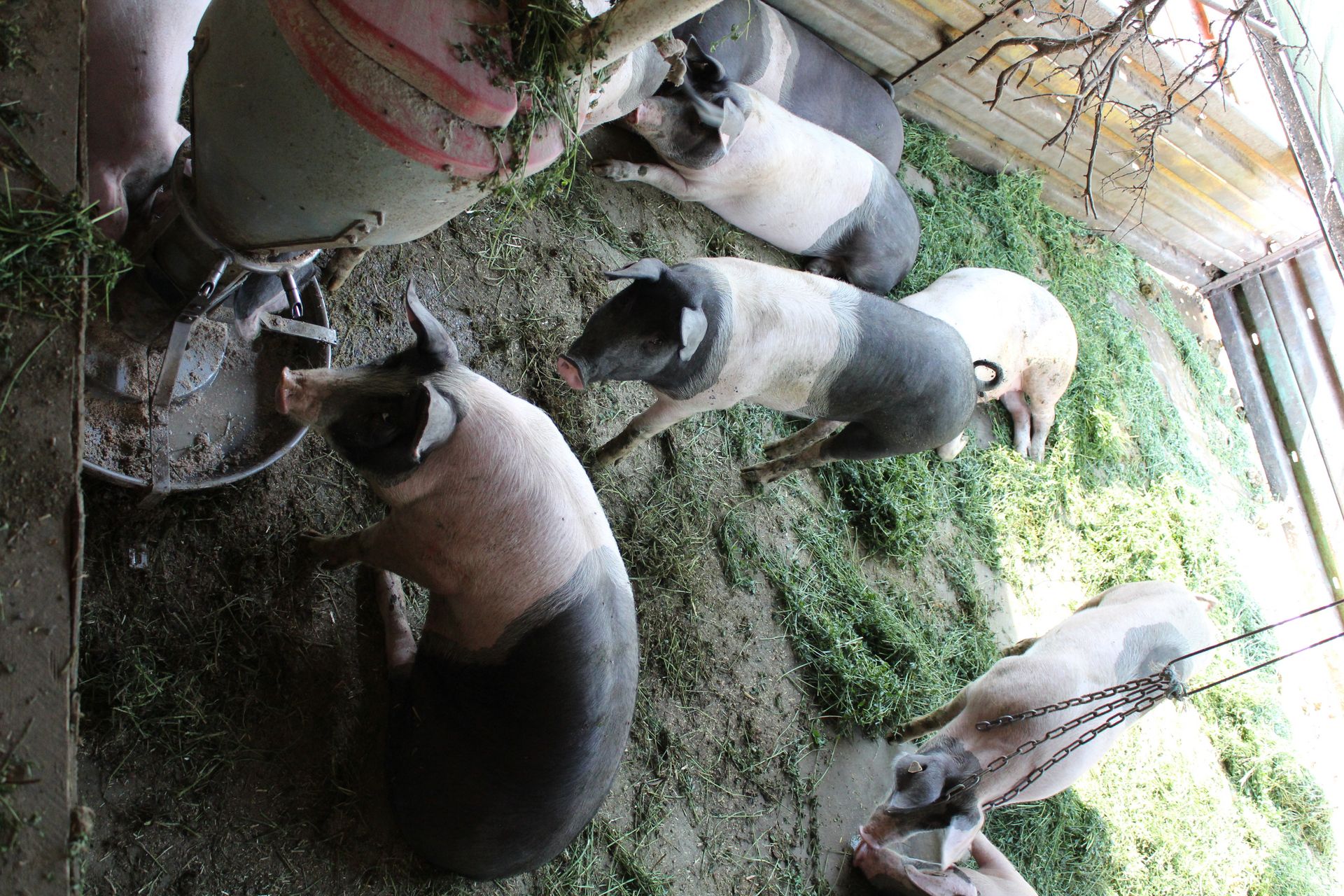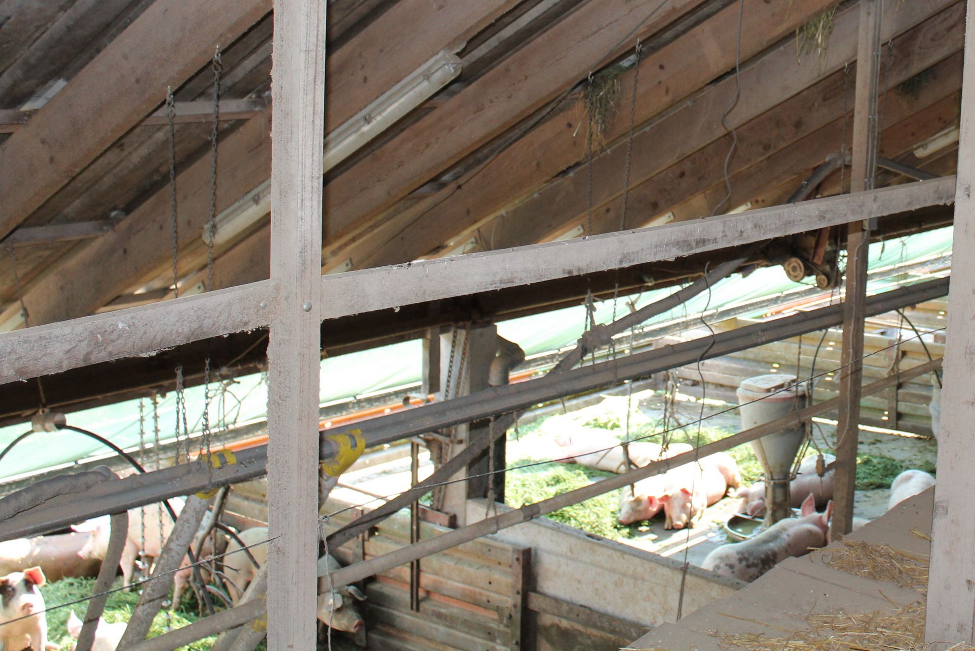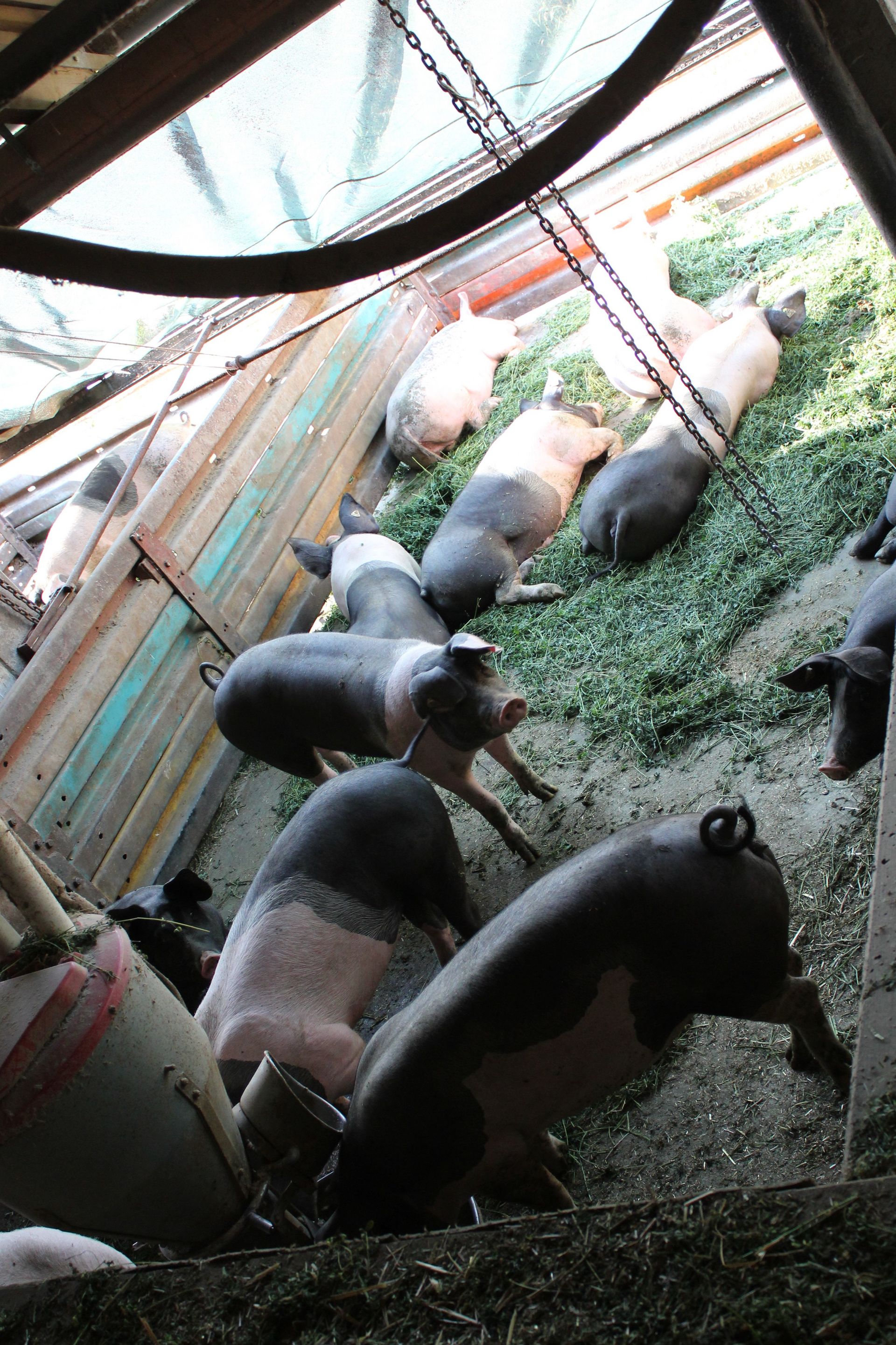 Die sogenannten Kisten, die die Schweine nachts zum Schlafen aufsuchen, werden in der kalten Jahreszeit mit Stroh eingestreut. Schweine sind ungern alleine und genießen es sich zusammen in die Kiste zu kuscheln – an heißen Tagen liegen die Schweine lieber ausgestreckt auf dem kühlenden Betonboden.