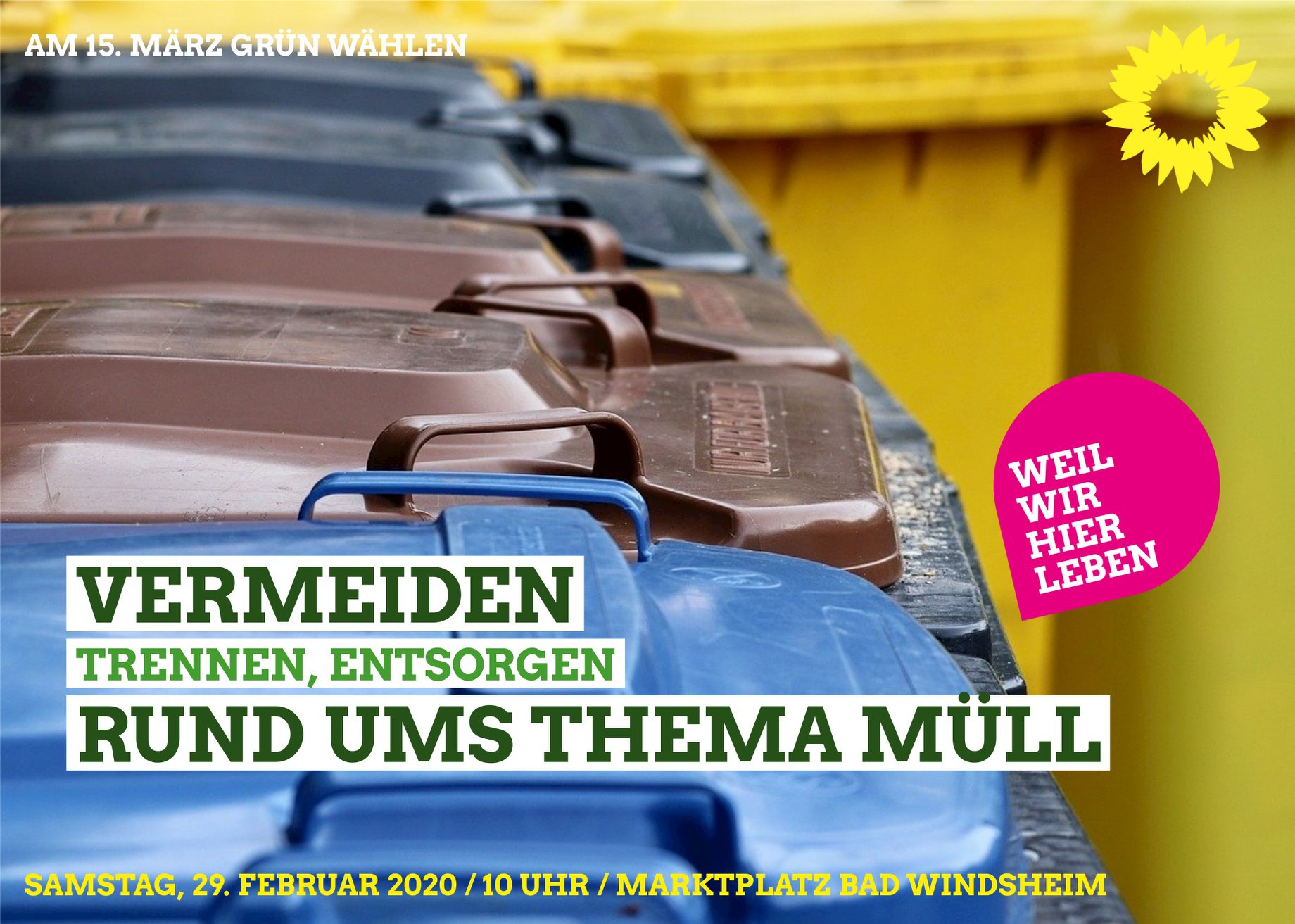 Am Samstag, 29. Februar 2020 findet unser 2. Infostand zur Kommunalwahl am Rathaus statt. Gespräche mit Stadtrats-KandidatInnen und Information über die Themen vor Ort! Diesmal steht der Müll im Mittelpunkt. Was bedeutet die Einführung der Gelben Tonne konkret? Welche Stoffe gehören wohin? Was passiert mit unserem Müll? Wie können wir Müll vermeiden? Darüber wollen wir informieren und diskutieren. Kommt vorbei!