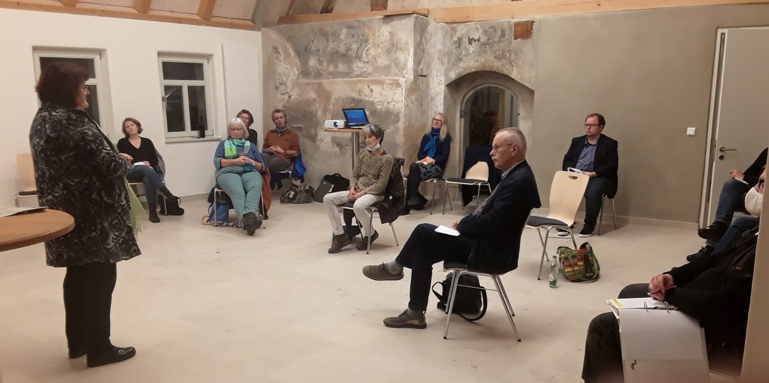 Im November war unter Einhaltung der Hygieneregeln noch eine Versammlung mit Anwesenheit möglich. Weit voneinander getrennt saßen wir in den großzügigen Räumlichkeiten des Kolbhauses und lauschten zunächst der Begrüßung durch unsere Sprecherin Ursula Pfäfflin Nefian, die neben Mitgliedern auch Gäste und sogar Ehrengäste willkommen heißen konnte: MdB Uwe Kekeritz sprach ebenso ein Grußwort wie die stellvertretende Landrätin Ruth Halbritter.