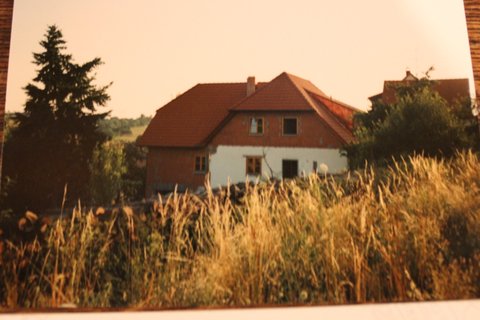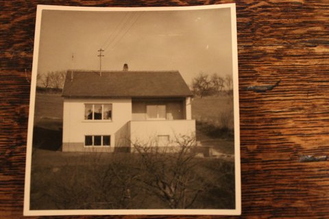 Bettina Schütz mit ihrem Mann wollte es ihrer Schwester gleichtun und auch das elterliche Wohnhaus an der Hauptstraße erhalten. Sie musste aber erkennen, dass sich im gesamten Untergeschoss Feuchtigkeit breitgemacht hatte, sodass ein Abriss angeraten schien. Der auf gleichem Grund errichtete Neubau verschlang keine weiteren Flächen und nahm, was ich besonders schön finde, die vielen von uns noch bekannte Bauform der Holzbergerschen Schneiderei auf. Schließlich entstand ein modernes Haus, das mit seinem steilen Dach nach Franken und damit in unser Dorf passt.