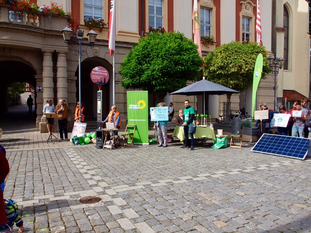 Der erste Klimastreik auf dem Marktplatz in Bad Windsheim war ein großer Erfolg! Rund 250 Menschen haben sich am 22.09. zum weltweiten Aktionstag #AllefürsKlima versammelt. Wie von den Schüler*innen von Fridays For Future erhofft und erwünscht, haben sich neben Kindern und Jugendlichen auch viele Erwachsene verschiedener Generationen zusammengefunden. Eben ganz im Sinne des Mottos #AllefürsKlima. Dementsprechend sprachen am offenen Mikrofon jung, alt und dazwischen, äußerten ihre Kritik an der Klimapolitik der Bundesregierung, formulierten Lösungswege und waren sich in der Forderung einig: Wir alle müssen handeln - jetzt!