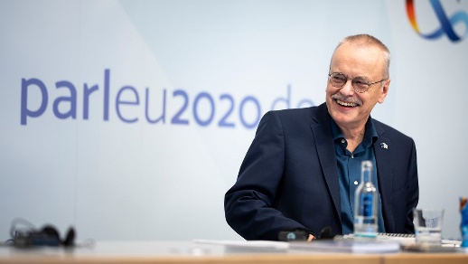 Uwe Kekeritz, MdB, in der Ausschussvorsitzendenkonferenz zum EU-Lieferkettengesetz (© Deutscher Bundestag/ Florian Gaertner/ photothek.net)