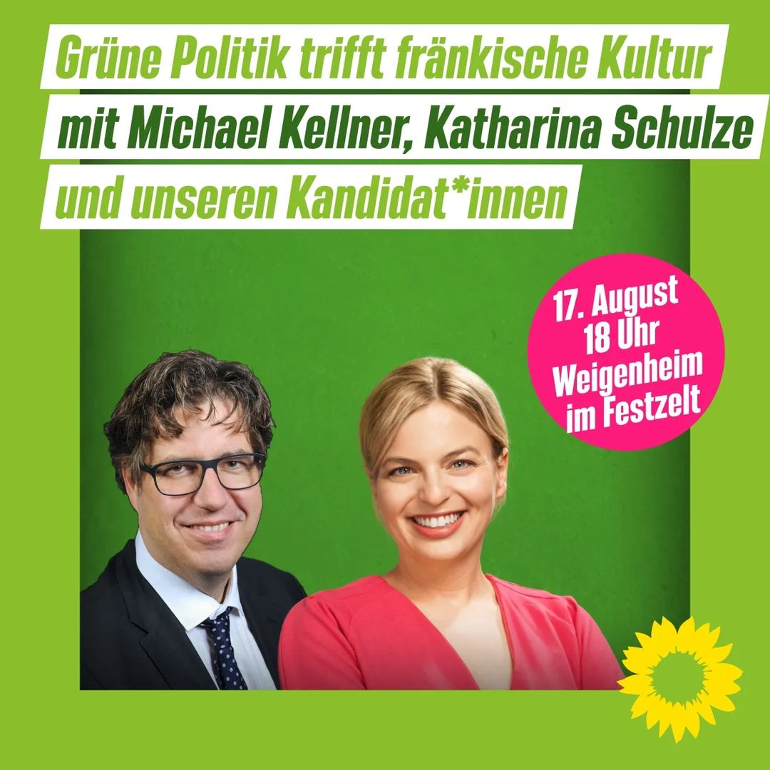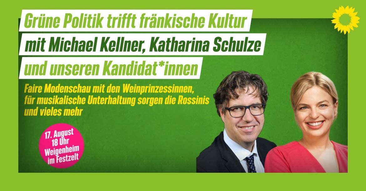Unter dem Motto GRÜNE POLITIK TRIFFT FRÄNKISCHE KULTUR laden wir am Donnerstag, 17. August, ab 18 Uhr ins Weinfestzelt nach Weigenheim ein.