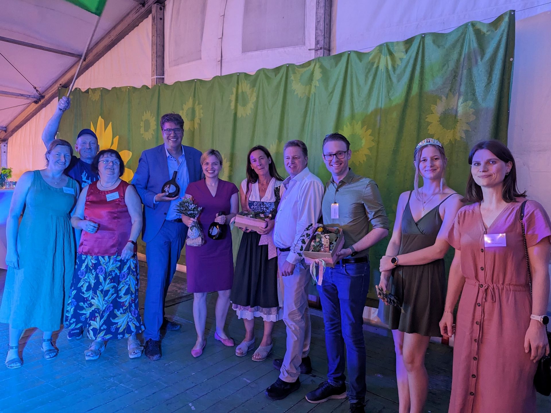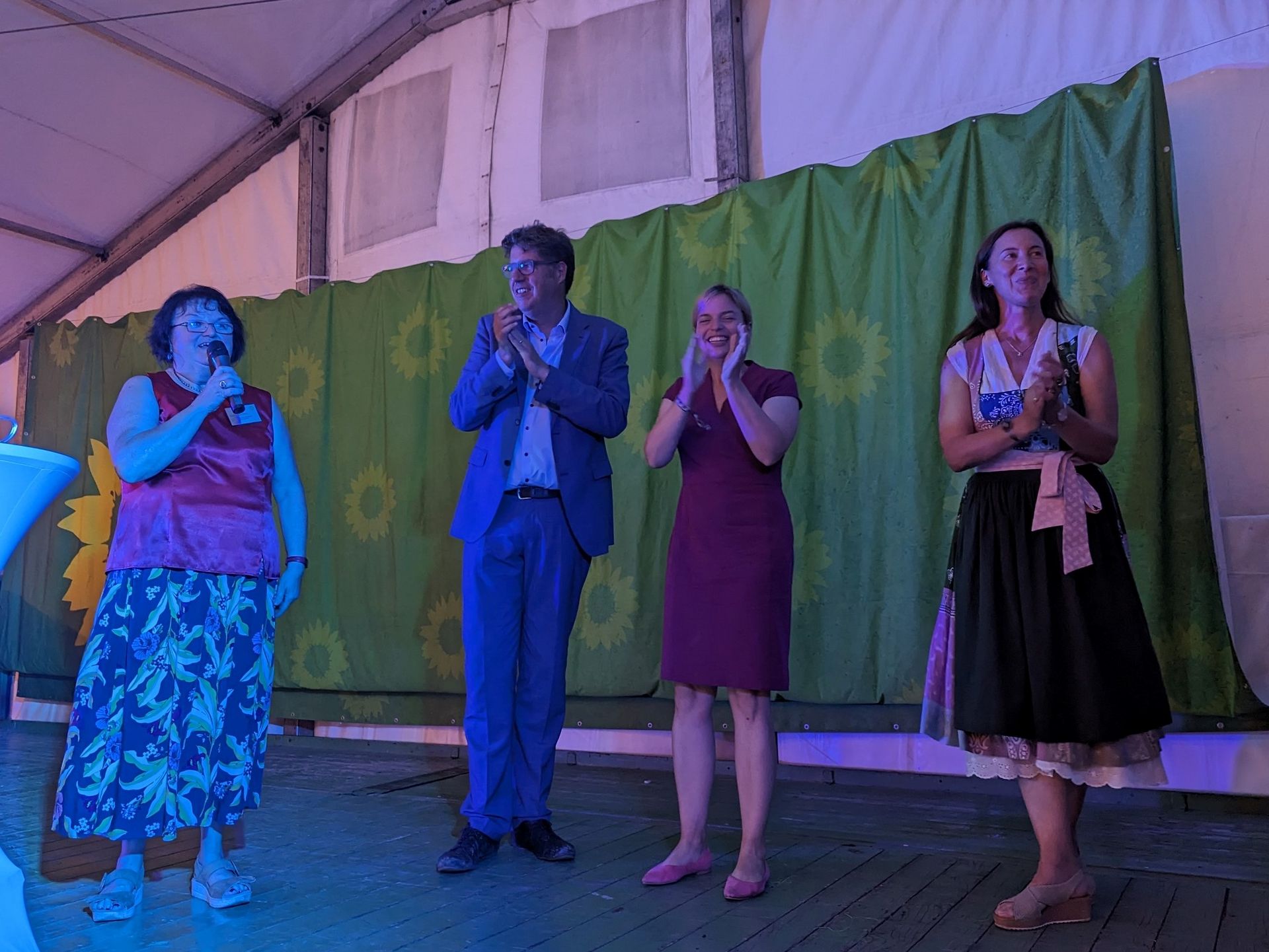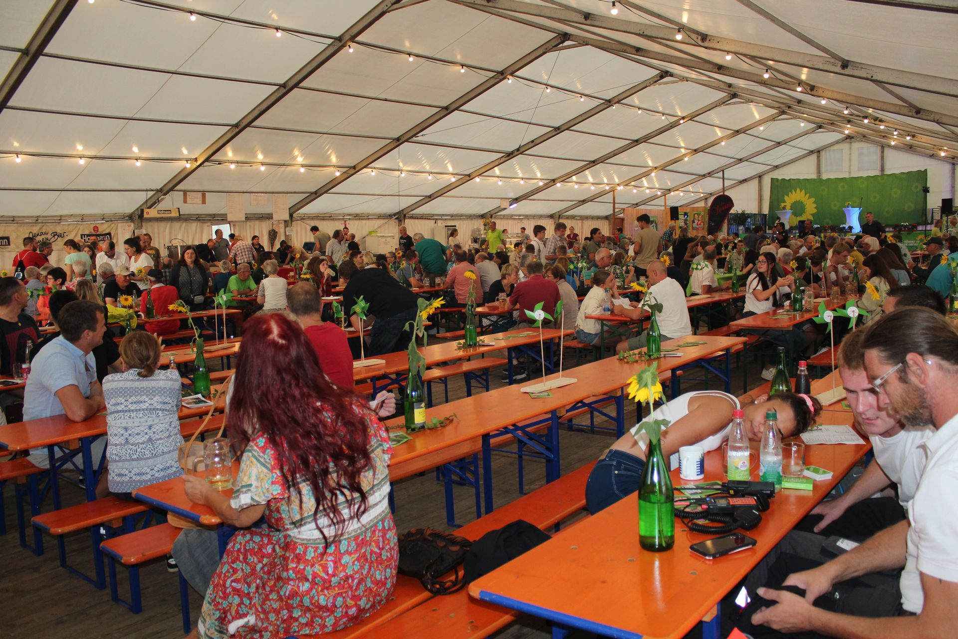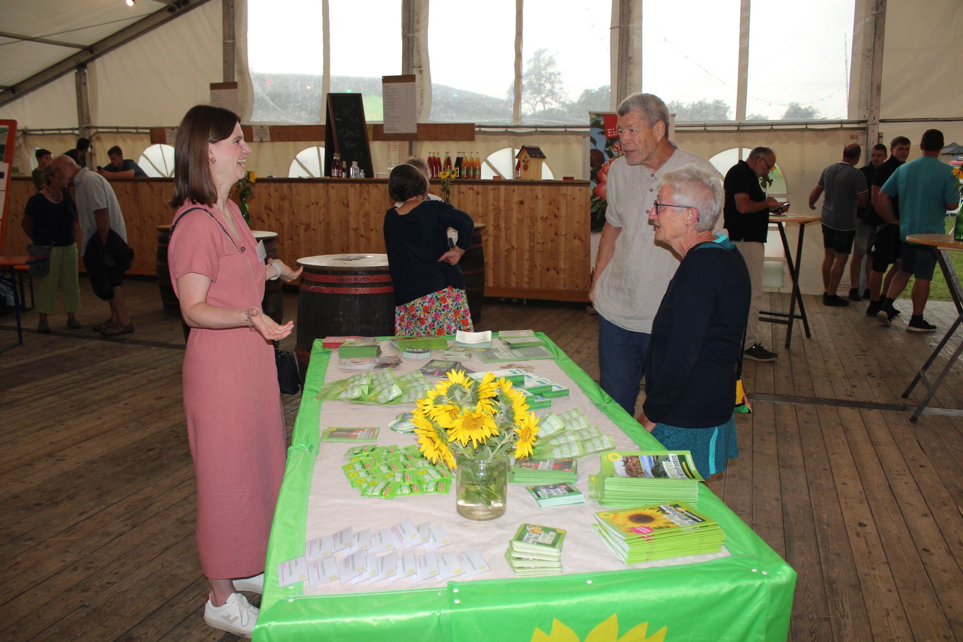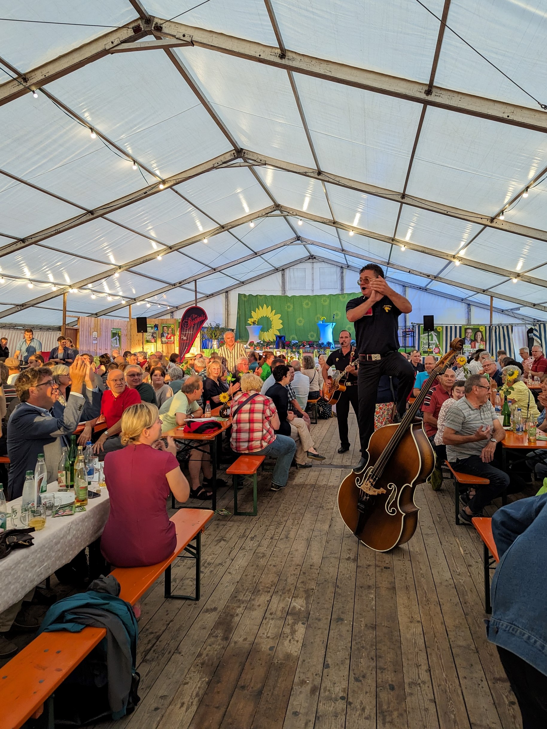 Katharina Schulze, unsere Spitzenkandidatin der Landtagswahl im Herbst, rockte gut gelaunt und energiegeladen das volle Weinzelt. Sie machte Stimmung, zog die anderen Gäste mit in ihren Bann und sprach bei ihrem Herzensthema Familienpolitik sicher vielen aus der Seele. Auch der Parlamentarische Staatssekretär im Wirtschaftsministerium, Michael Kellner, hatte sichtlich Spaß am Unterhaltungsprogramm, klatschte mit und sprach auf der Bühne viele wichtige Themen an. An den Infotischen zeigten sich beide sehr interessiert und auch im persönlichen Gespräch nahmen sie sich allen Anliegen an, welche an sie herangetragen wurden.