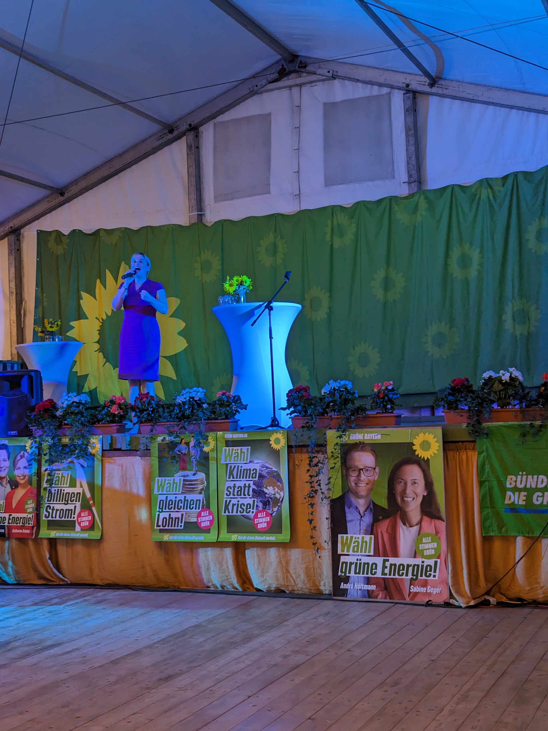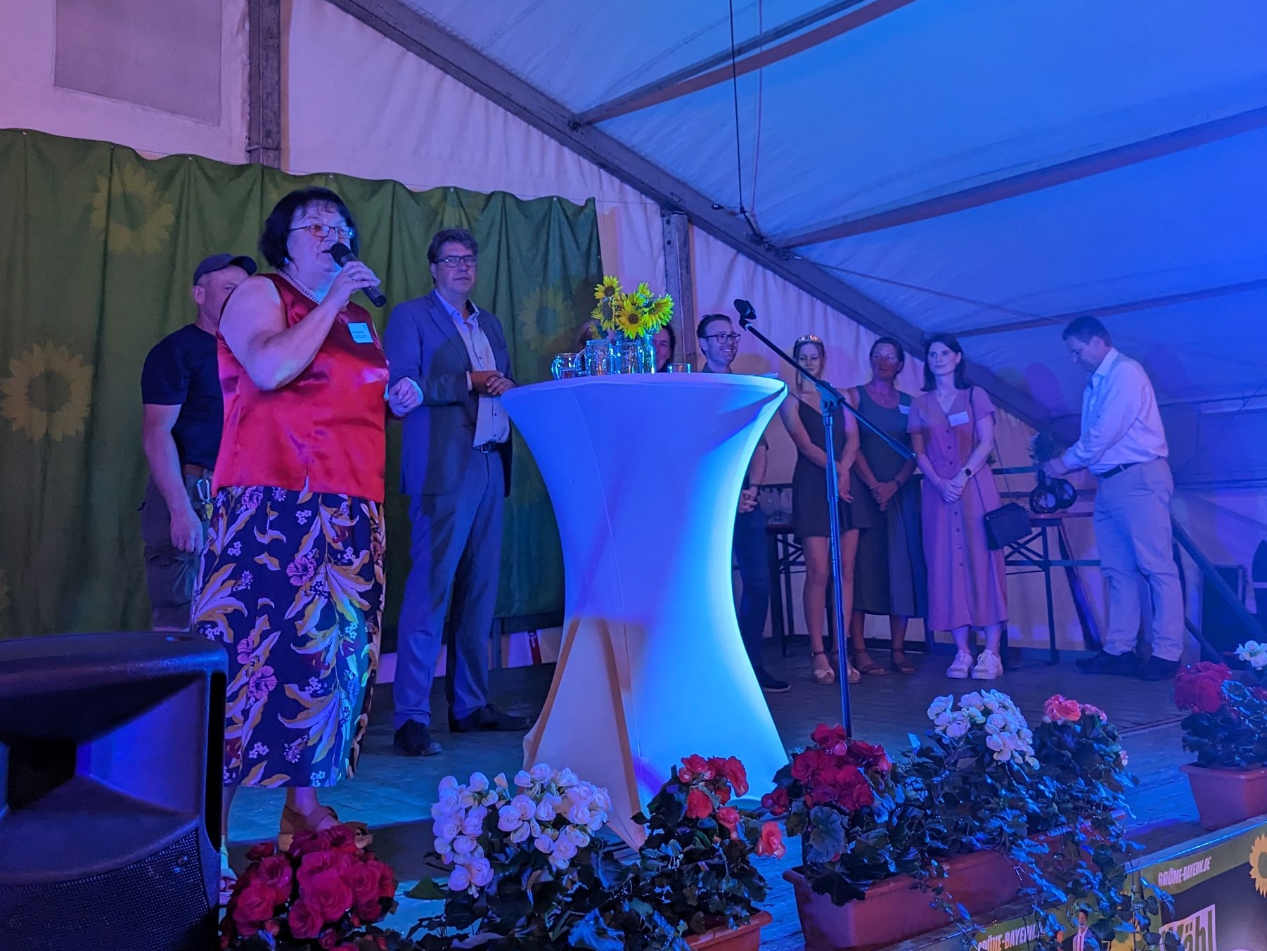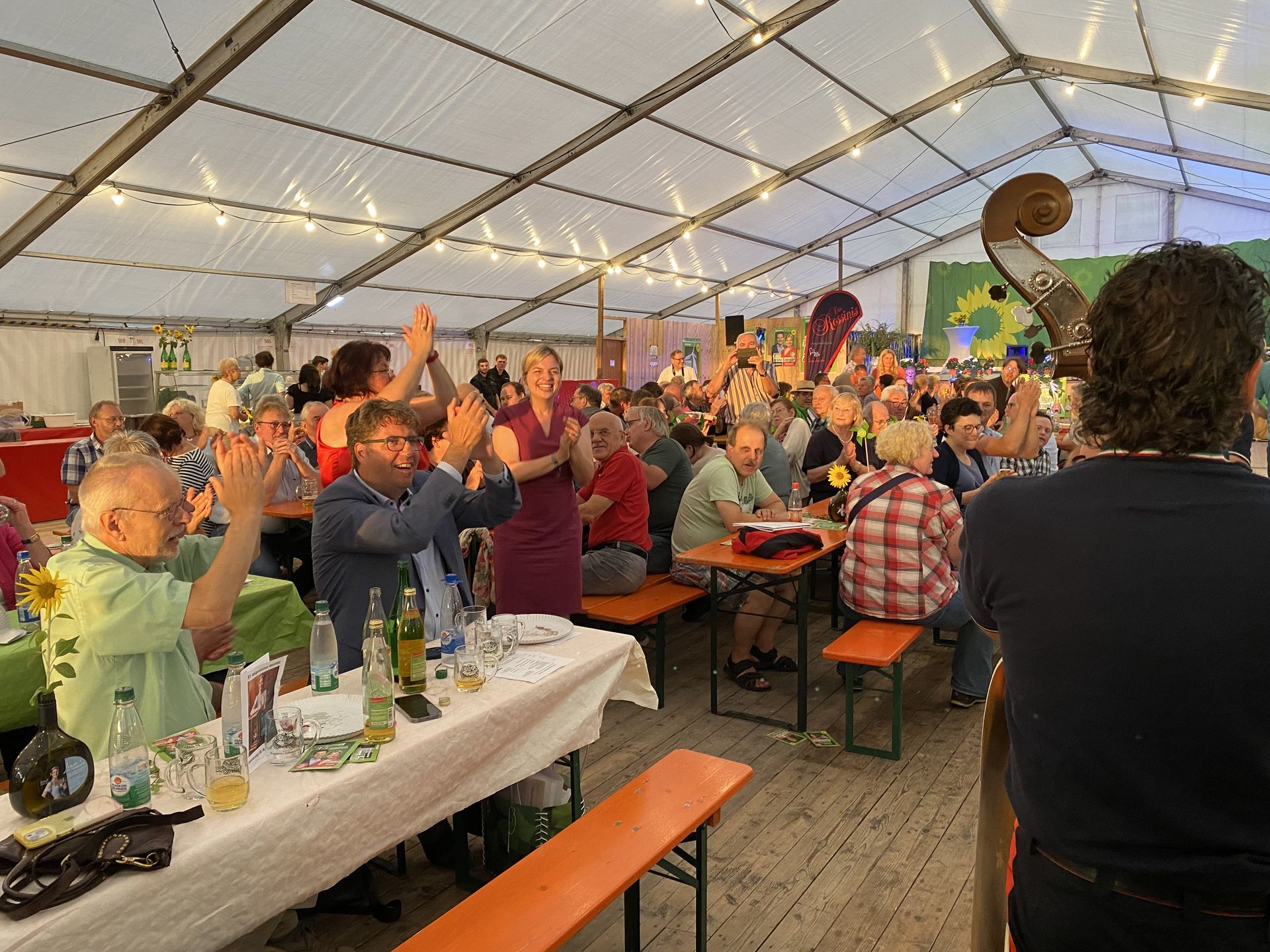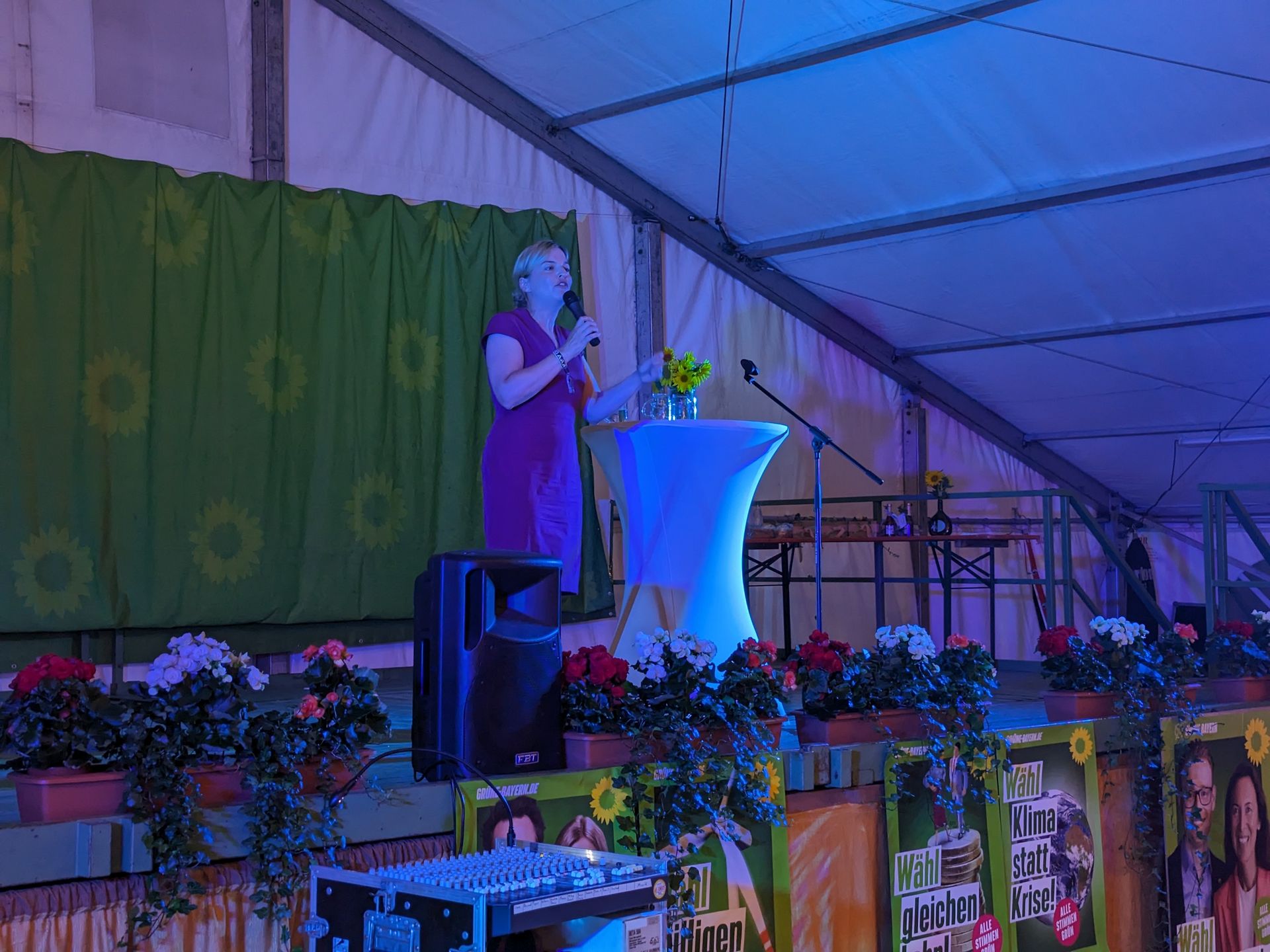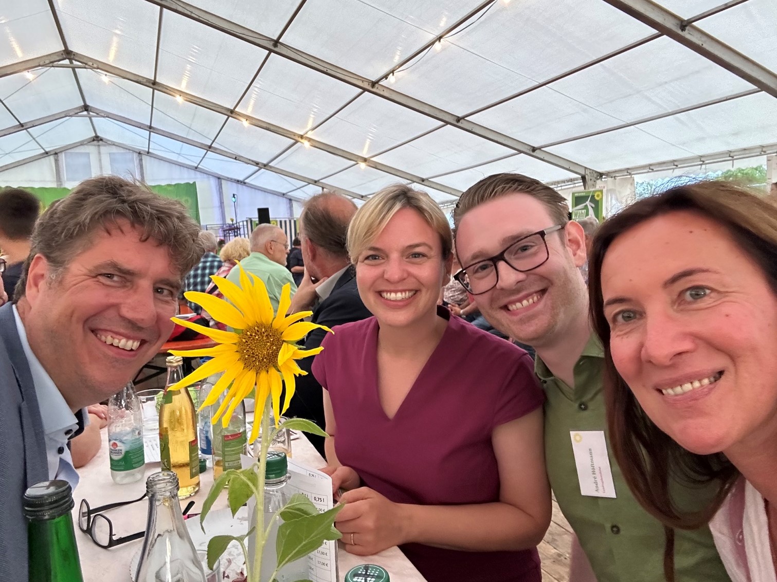 Katharina Schulze, unsere Spitzenkandidatin der Landtagswahl im Herbst, rockte gut gelaunt und energiegeladen das volle Weinzelt. Sie machte Stimmung, zog die anderen Gäste mit in ihren Bann und sprach bei ihrem Herzensthema Familienpolitik sicher vielen aus der Seele. Auch der Parlamentarische Staatssekretär im Wirtschaftsministerium, Michael Kellner, hatte sichtlich Spaß am Unterhaltungsprogramm, klatschte mit und sprach auf der Bühne viele wichtige Themen an. An den Infotischen zeigten sich beide sehr interessiert und auch im persönlichen Gespräch nahmen sie sich allen Anliegen an, welche an sie herangetragen wurden.