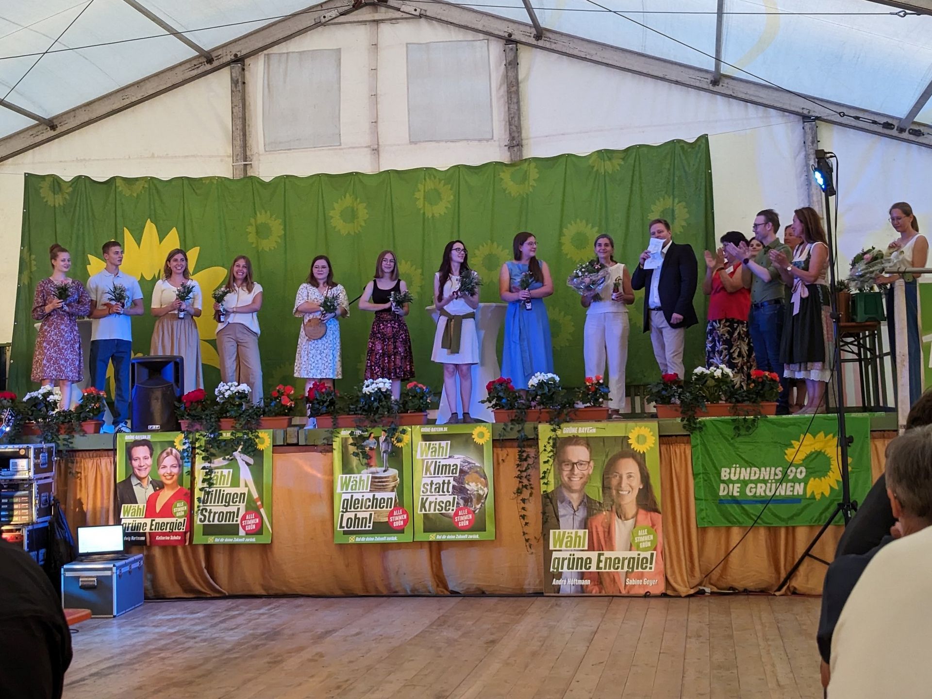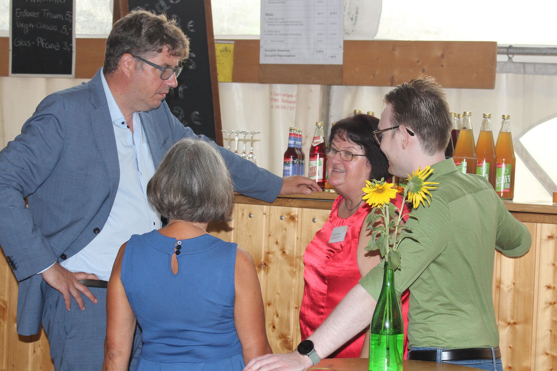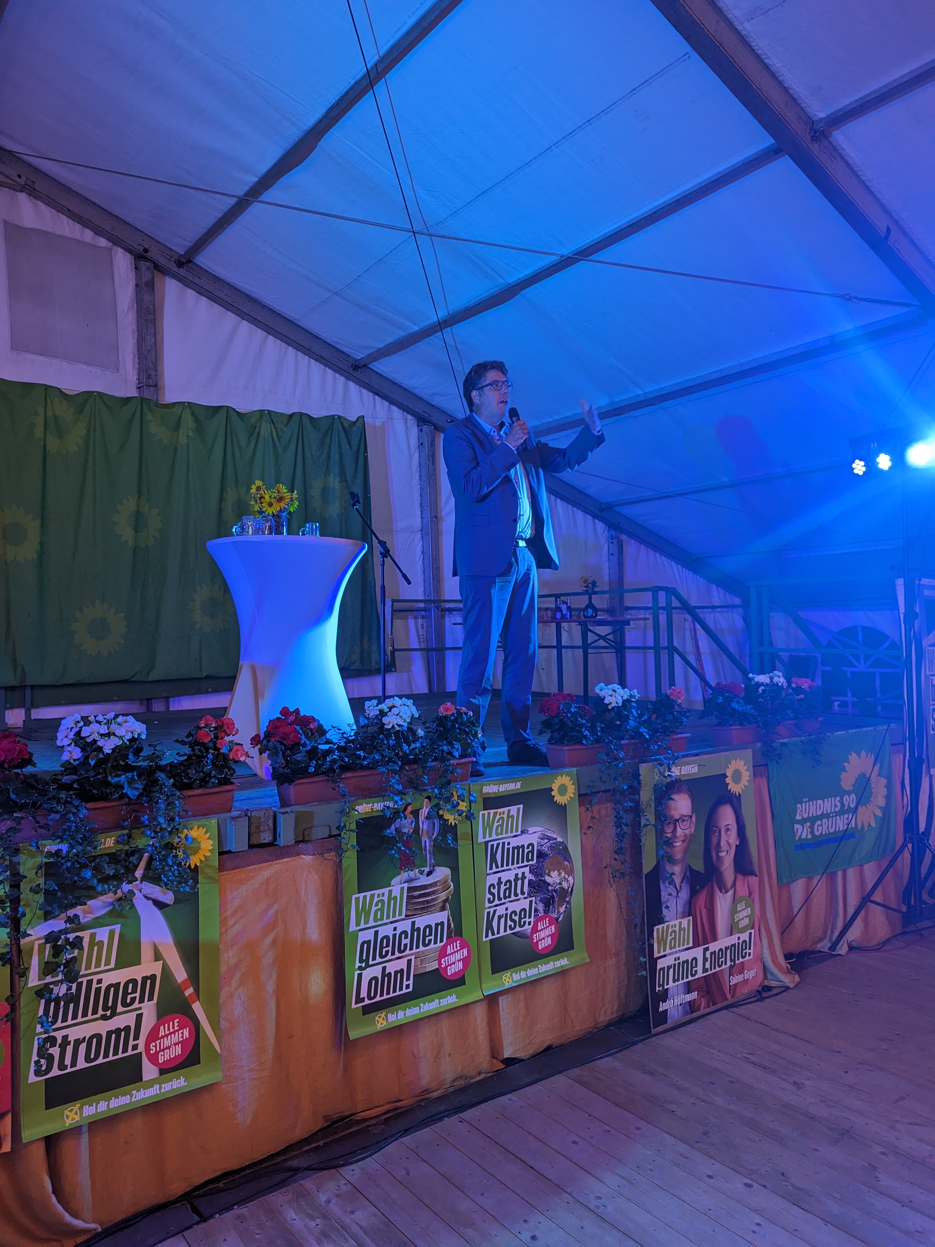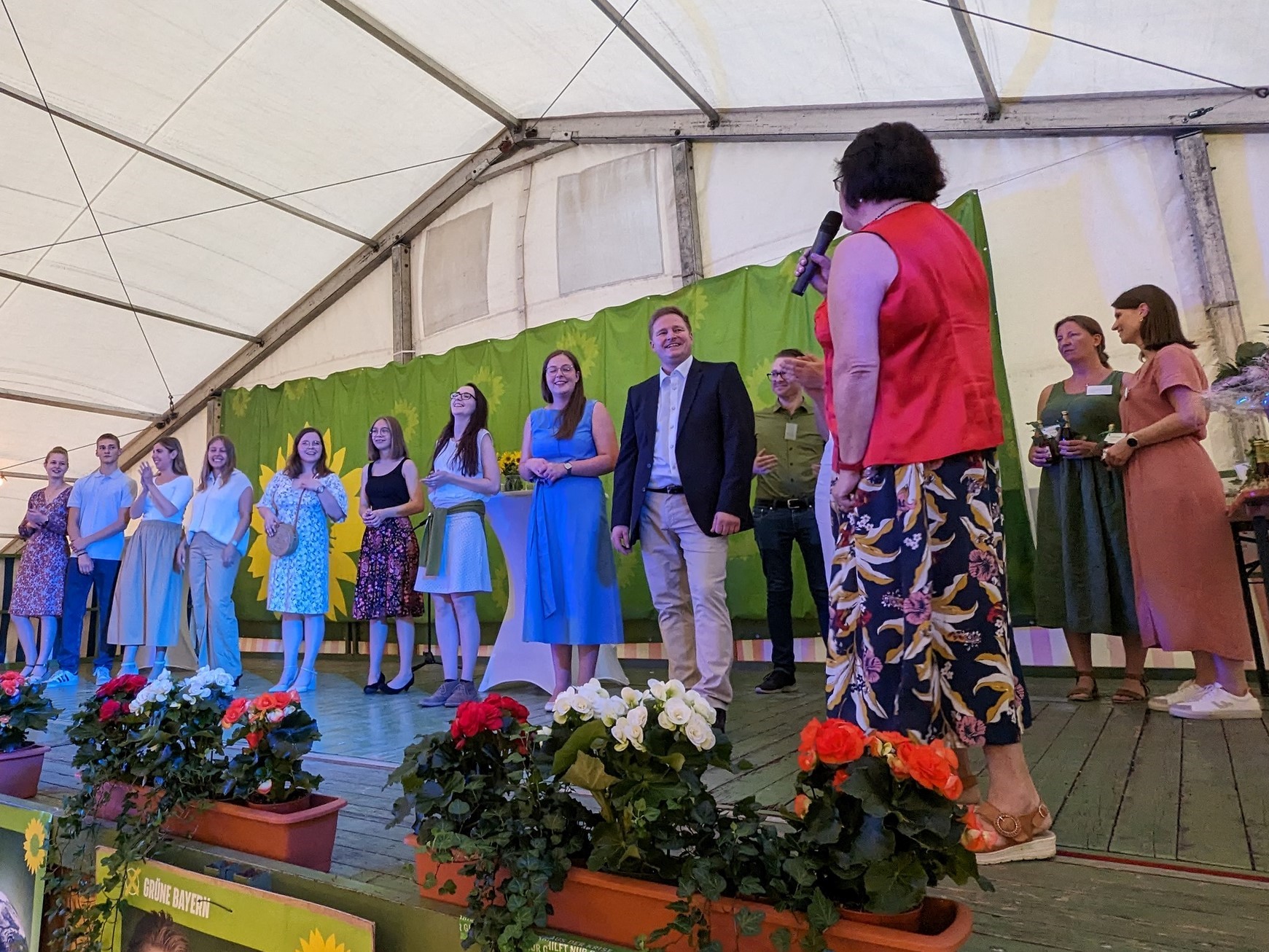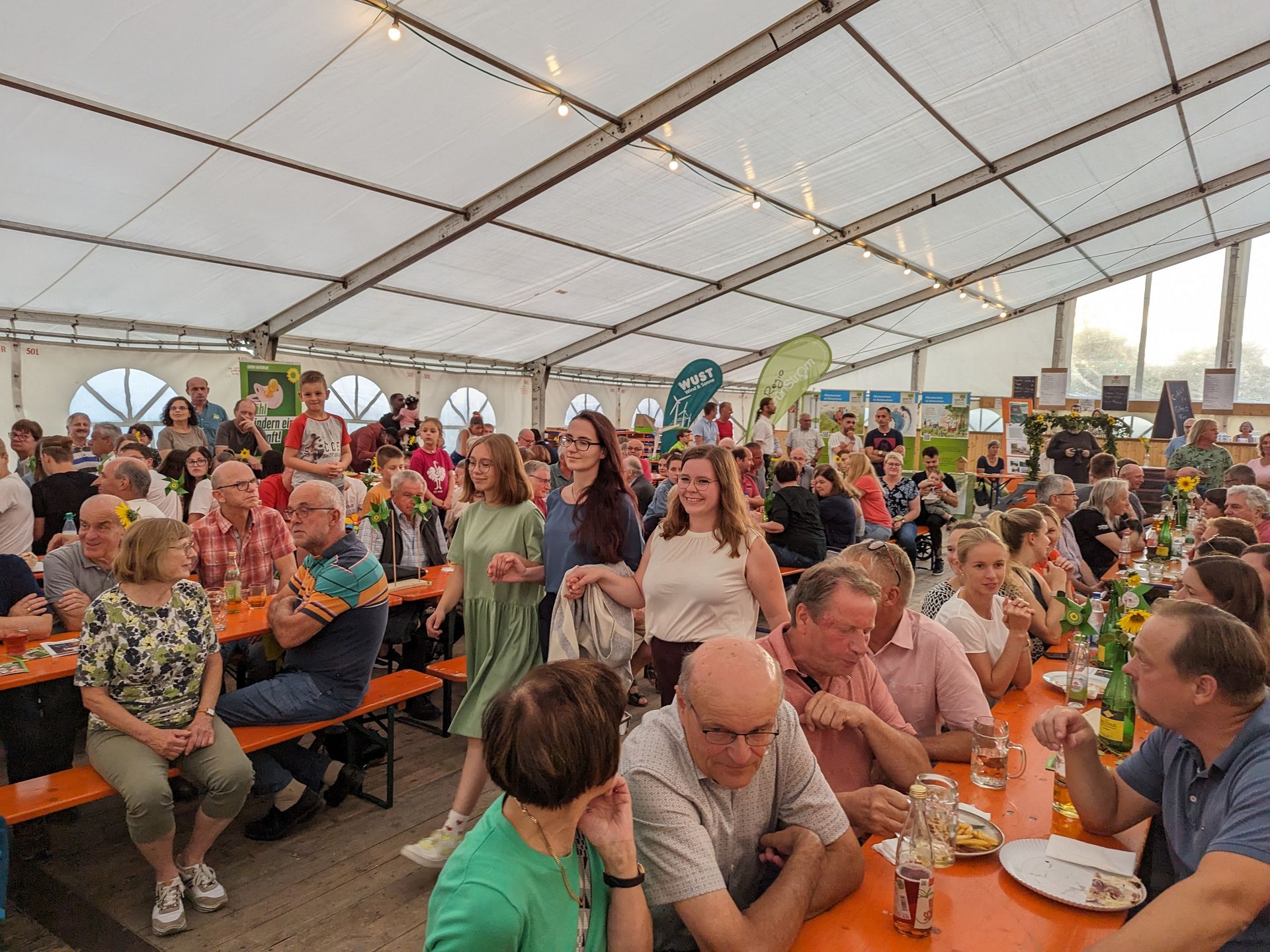 Katharina Schulze, unsere Spitzenkandidatin der Landtagswahl im Herbst, rockte gut gelaunt und energiegeladen das volle Weinzelt. Sie machte Stimmung, zog die anderen Gäste mit in ihren Bann und sprach bei ihrem Herzensthema Familienpolitik sicher vielen aus der Seele. Auch der Parlamentarische Staatssekretär im Wirtschaftsministerium, Michael Kellner, hatte sichtlich Spaß am Unterhaltungsprogramm, klatschte mit und sprach auf der Bühne viele wichtige Themen an. An den Infotischen zeigten sich beide sehr interessiert und auch im persönlichen Gespräch nahmen sie sich allen Anliegen an, welche an sie herangetragen wurden.