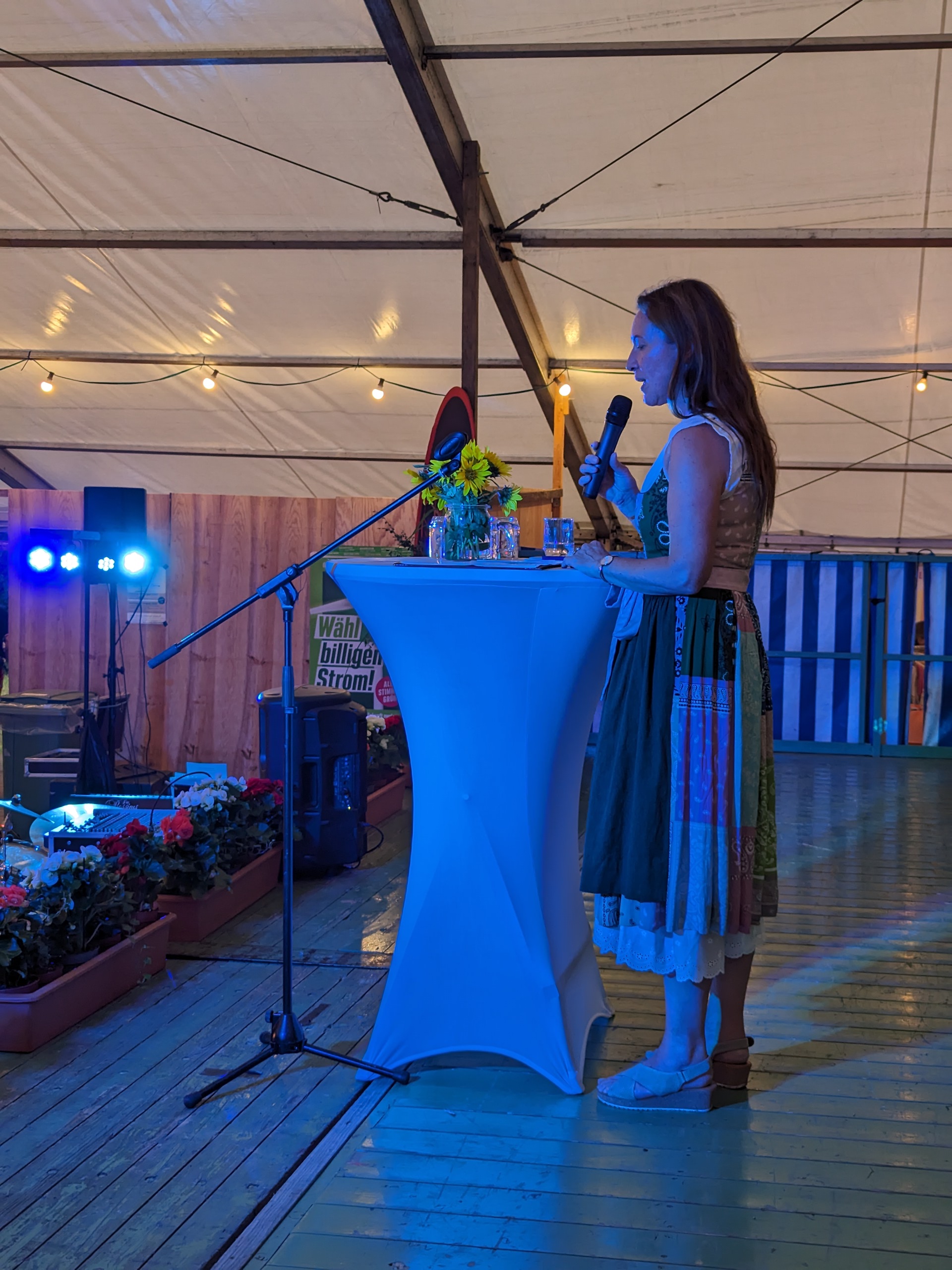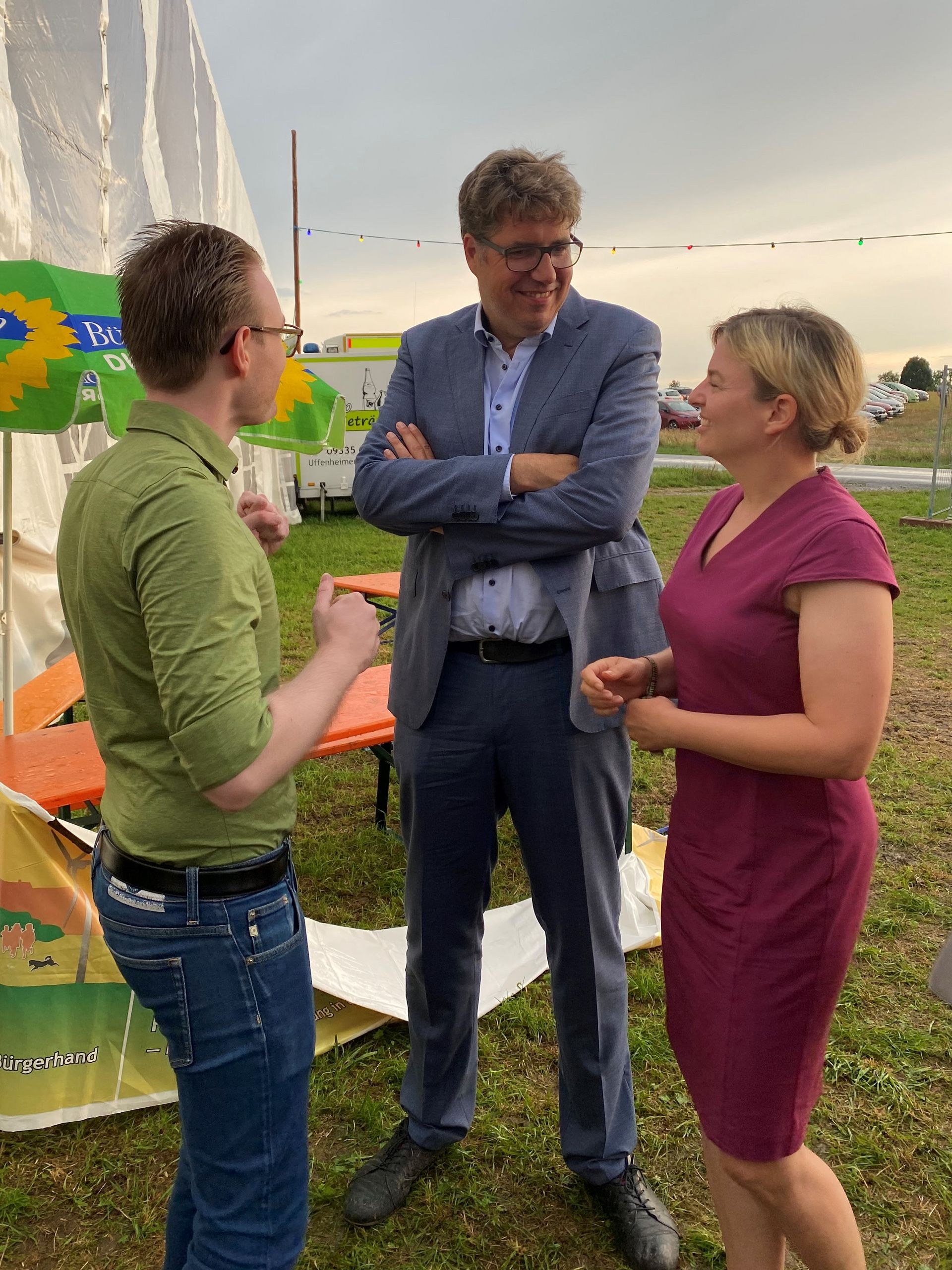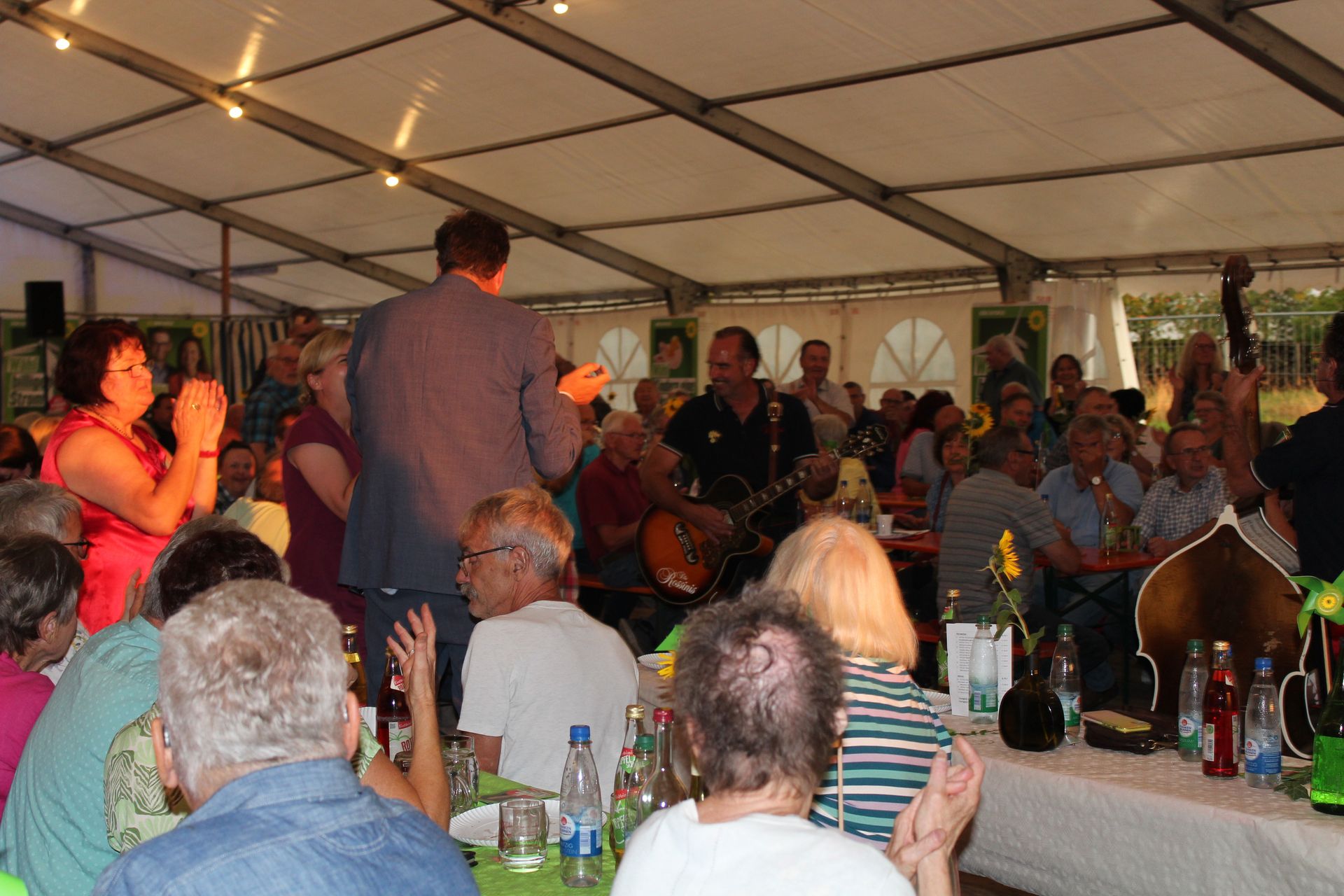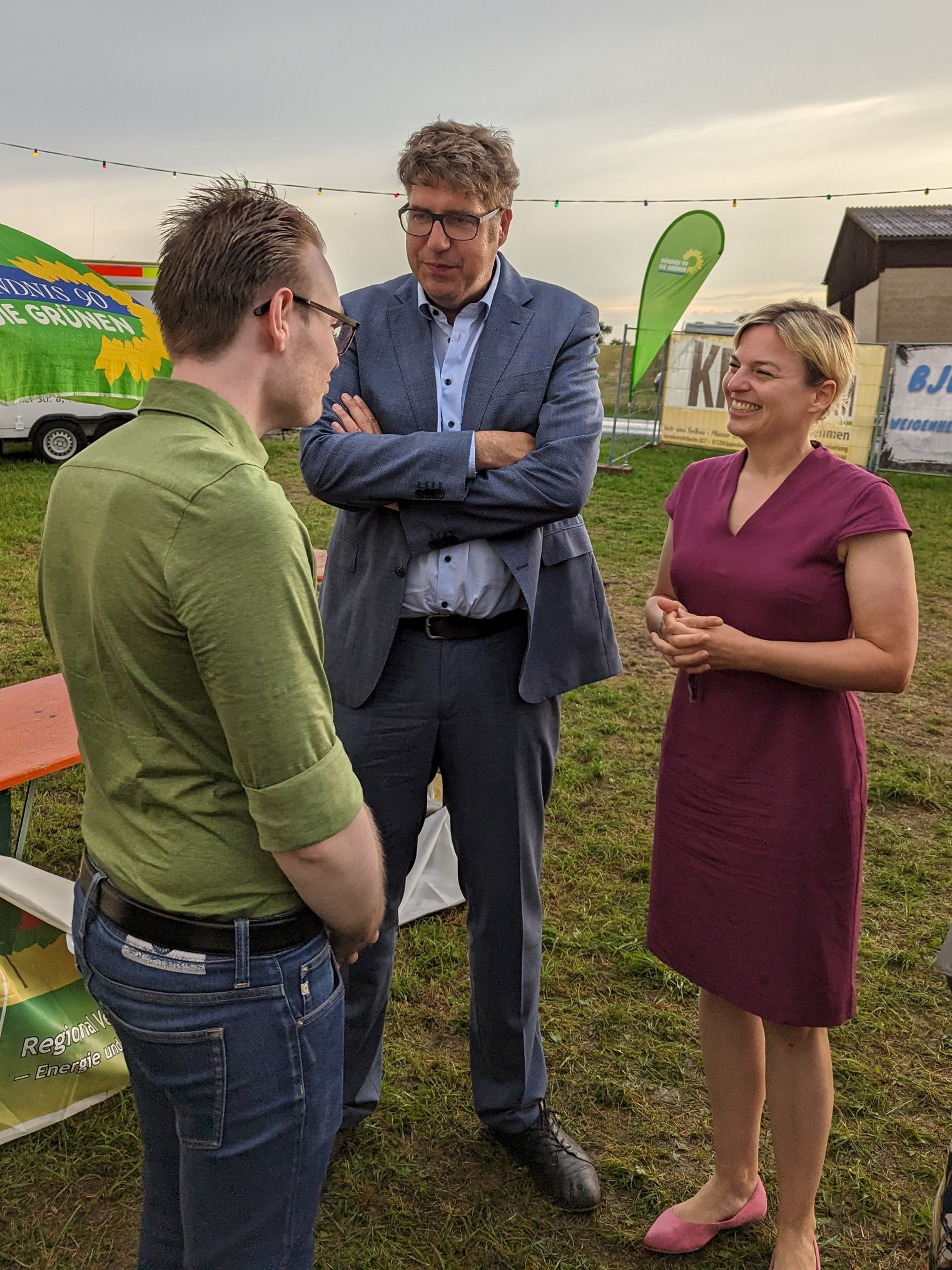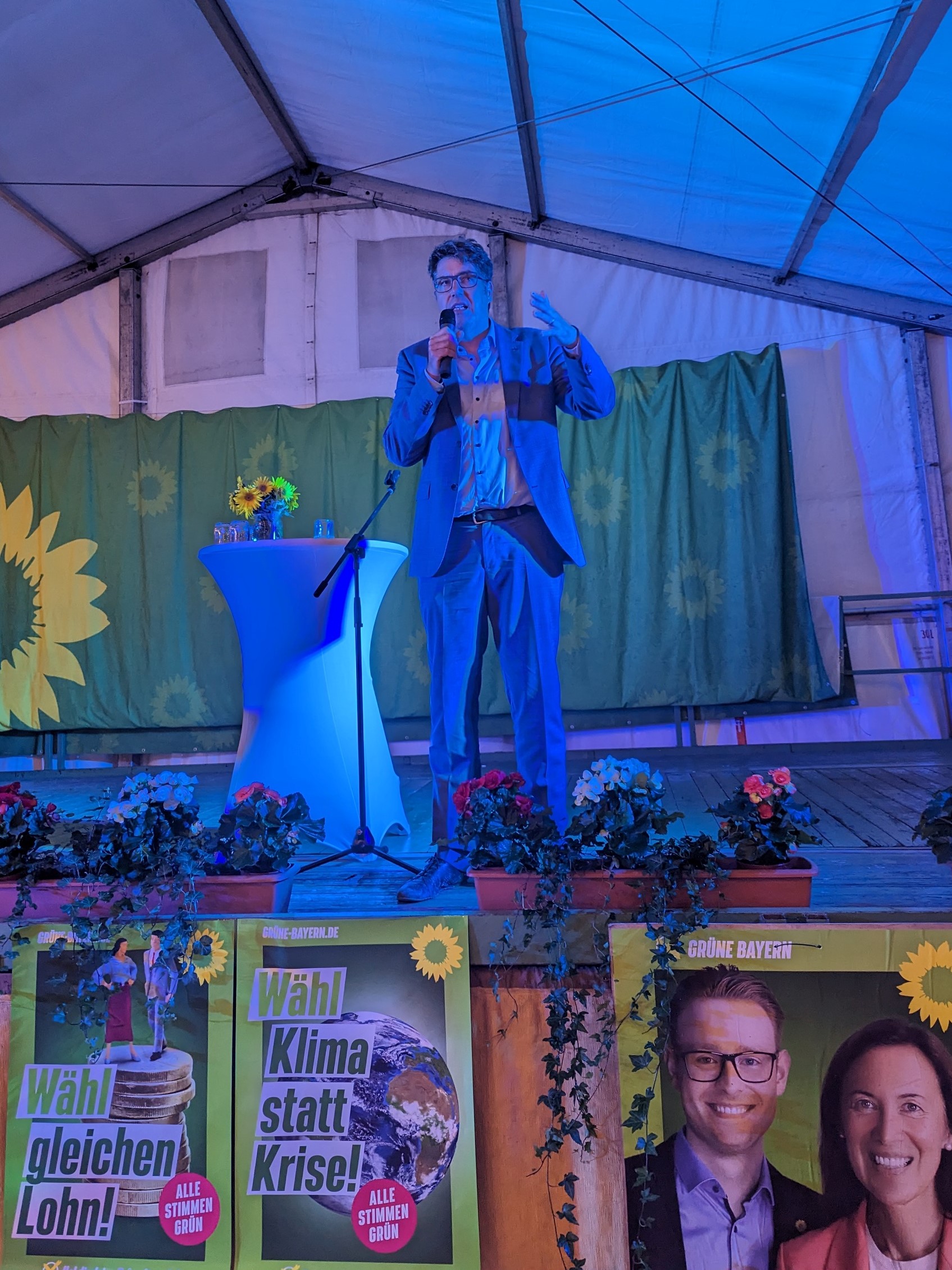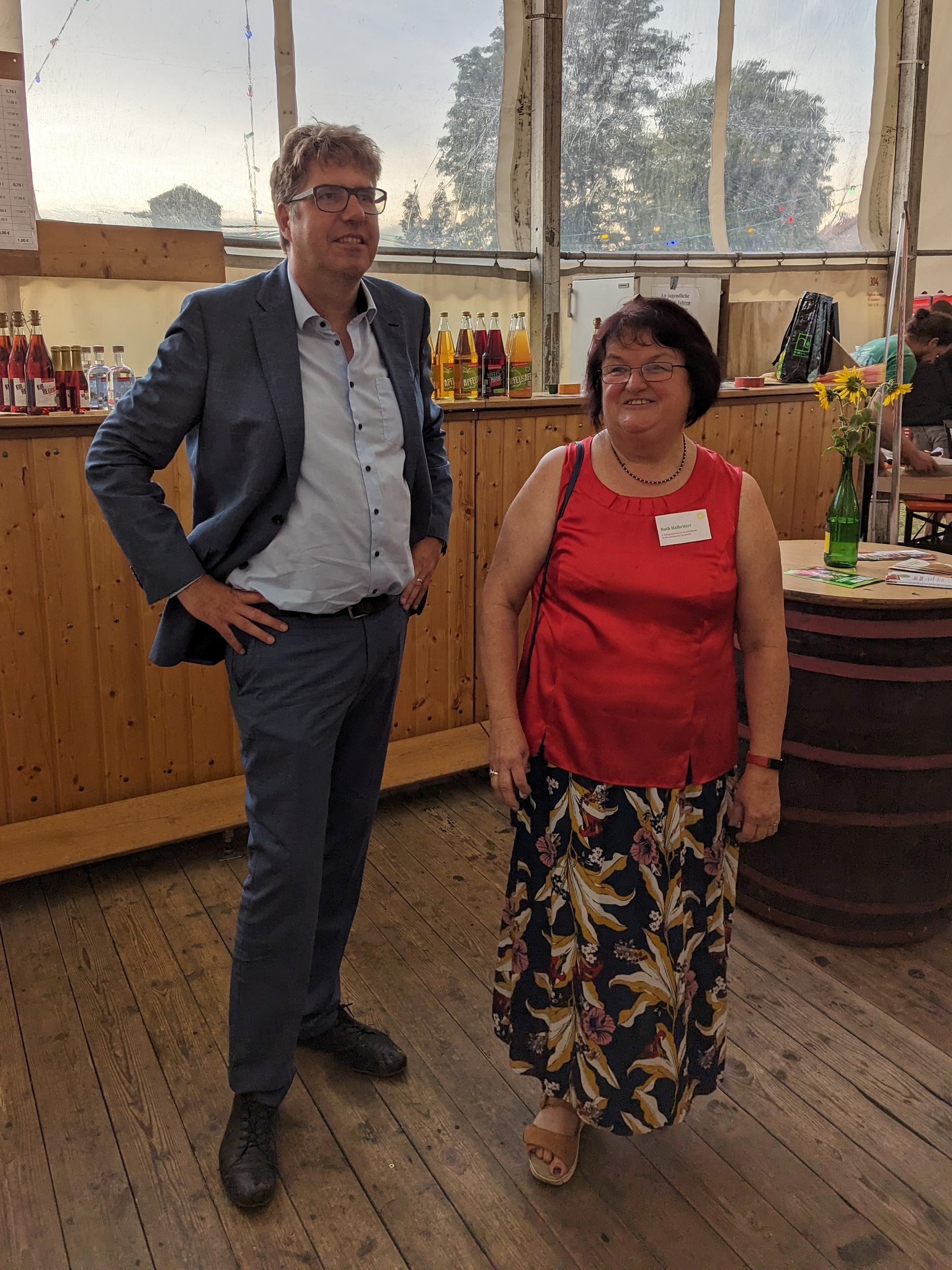 Katharina Schulze, unsere Spitzenkandidatin der Landtagswahl im Herbst, rockte gut gelaunt und energiegeladen das volle Weinzelt. Sie machte Stimmung, zog die anderen Gäste mit in ihren Bann und sprach bei ihrem Herzensthema Familienpolitik sicher vielen aus der Seele. Auch der Parlamentarische Staatssekretär im Wirtschaftsministerium, Michael Kellner, hatte sichtlich Spaß am Unterhaltungsprogramm, klatschte mit und sprach auf der Bühne viele wichtige Themen an. An den Infotischen zeigten sich beide sehr interessiert und auch im persönlichen Gespräch nahmen sie sich allen Anliegen an, welche an sie herangetragen wurden.