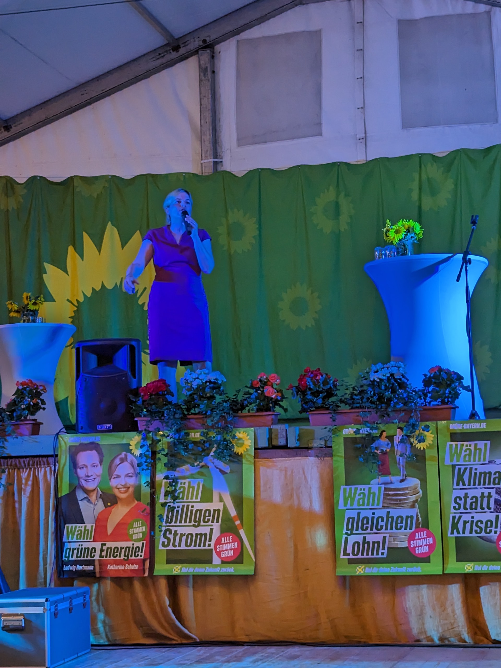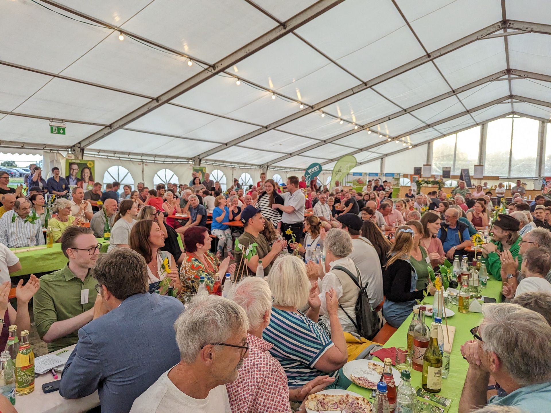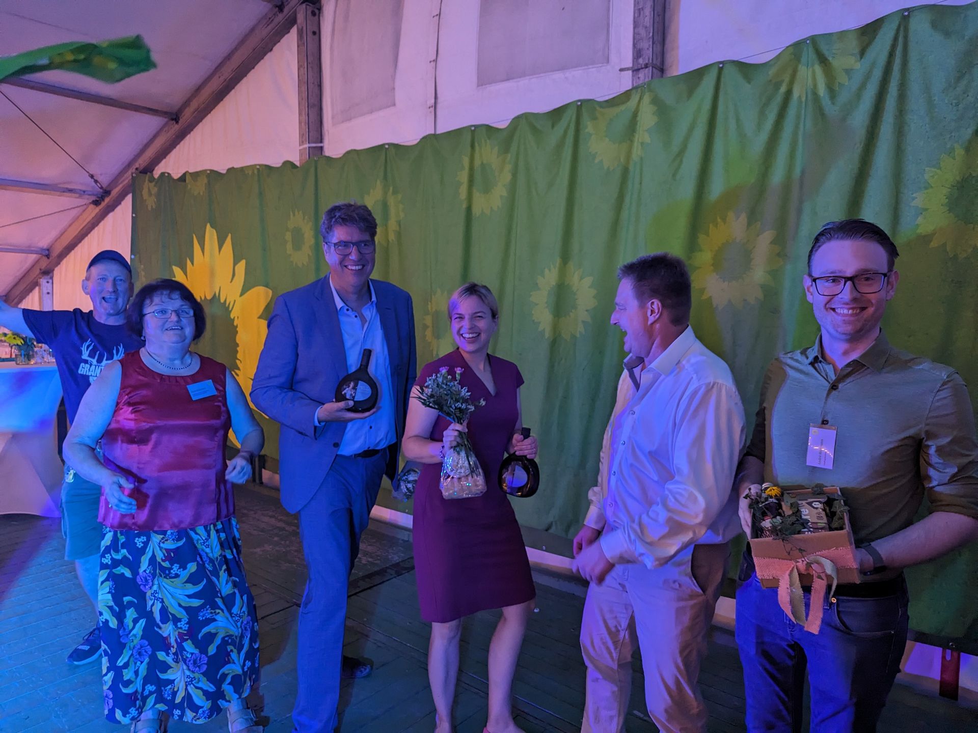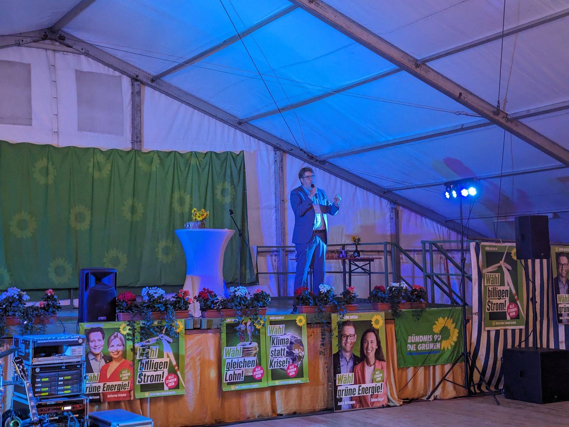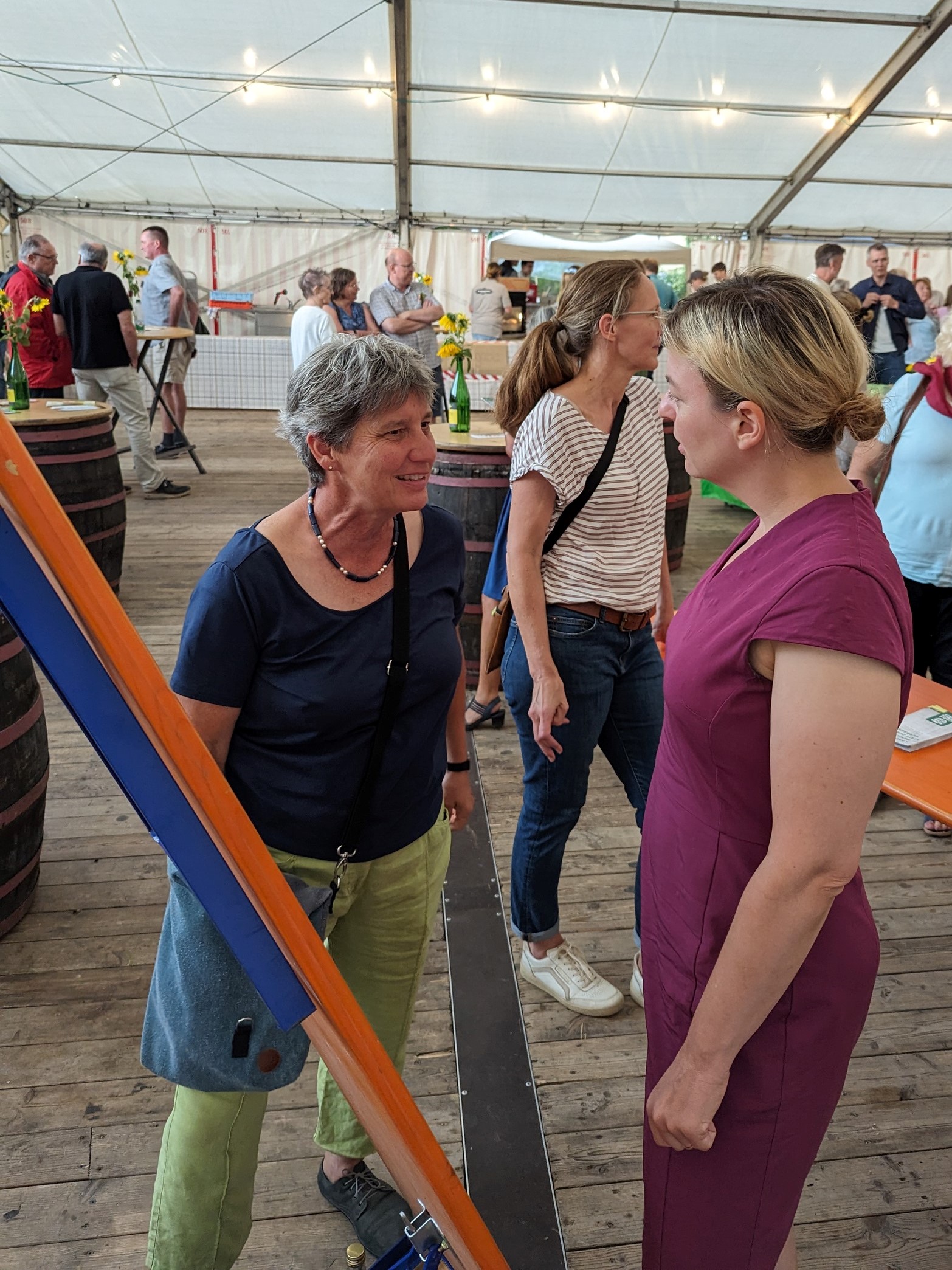 Katharina Schulze, unsere Spitzenkandidatin der Landtagswahl im Herbst, rockte gut gelaunt und energiegeladen das volle Weinzelt. Sie machte Stimmung, zog die anderen Gäste mit in ihren Bann und sprach bei ihrem Herzensthema Familienpolitik sicher vielen aus der Seele. Auch der Parlamentarische Staatssekretär im Wirtschaftsministerium, Michael Kellner, hatte sichtlich Spaß am Unterhaltungsprogramm, klatschte mit und sprach auf der Bühne viele wichtige Themen an. An den Infotischen zeigten sich beide sehr interessiert und auch im persönlichen Gespräch nahmen sie sich allen Anliegen an, welche an sie herangetragen wurden.
