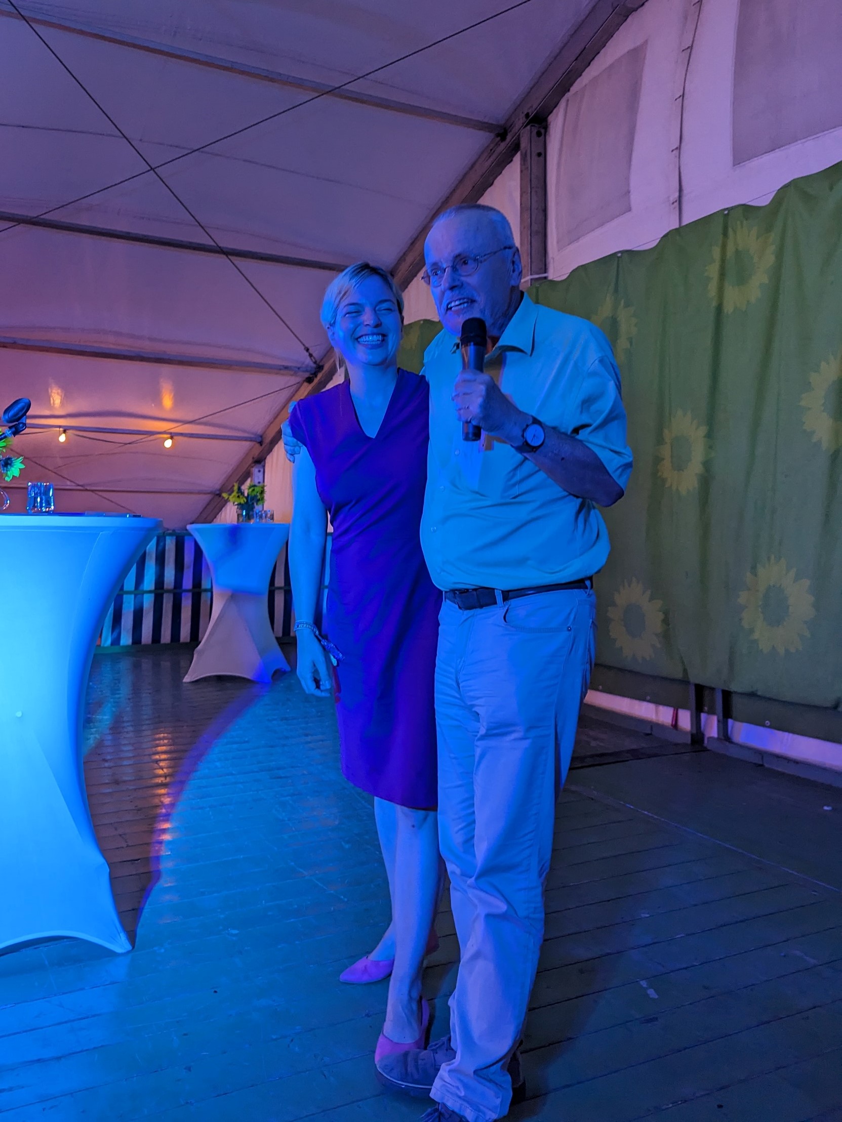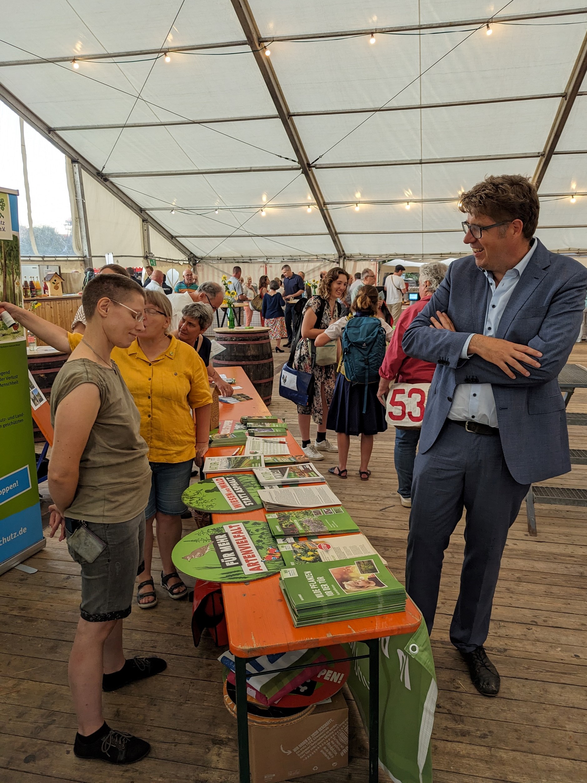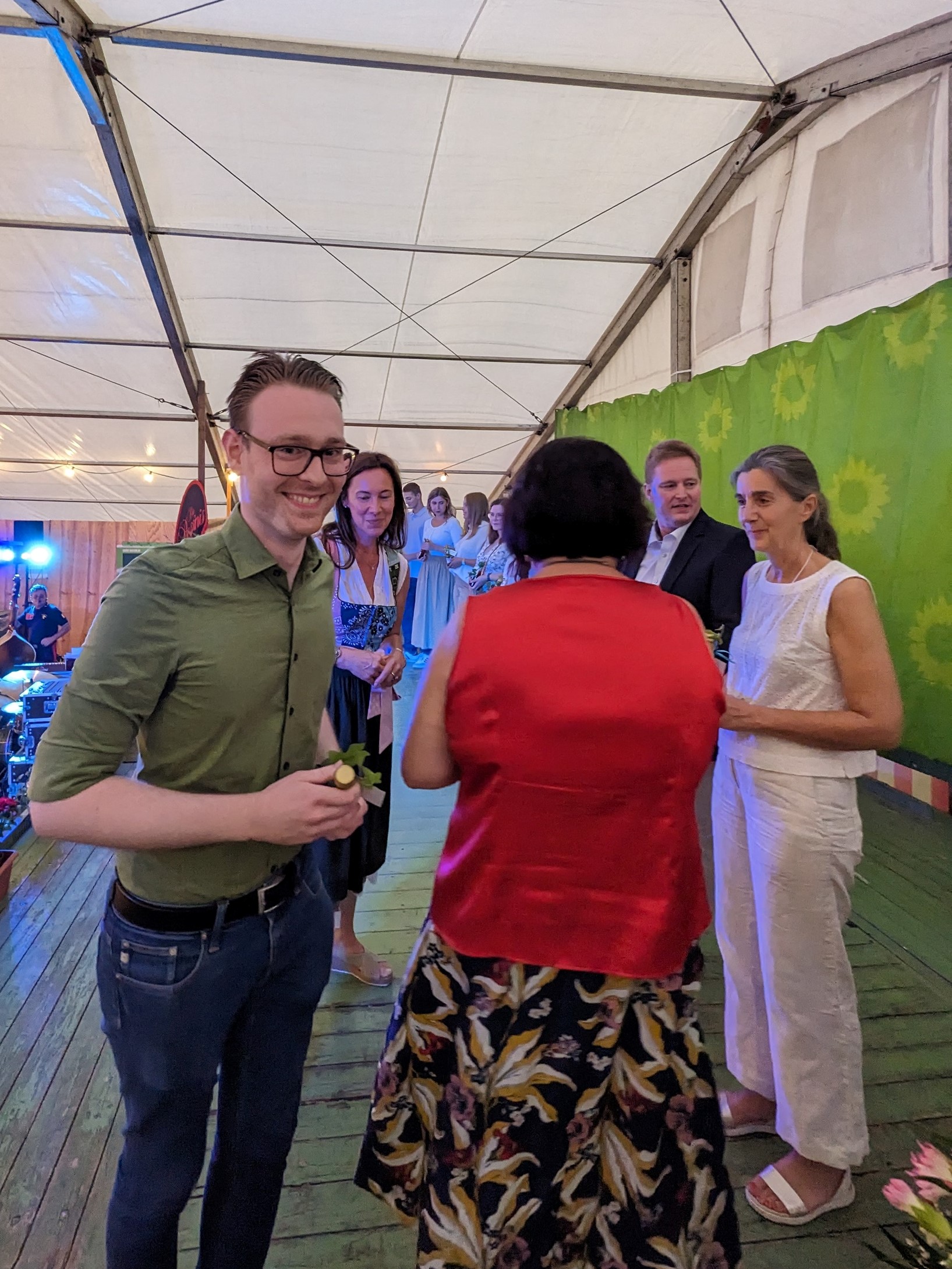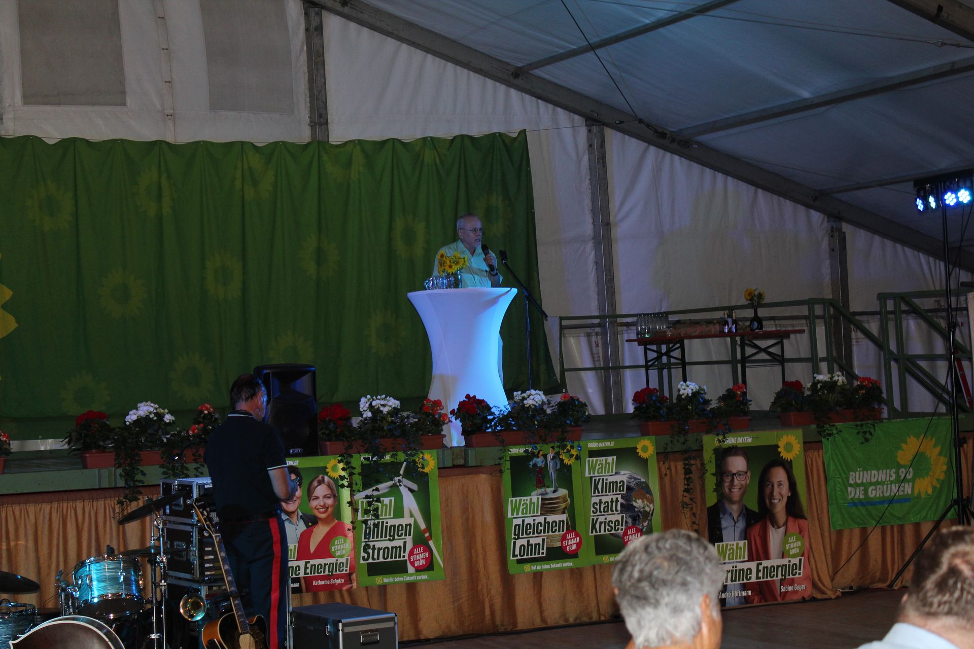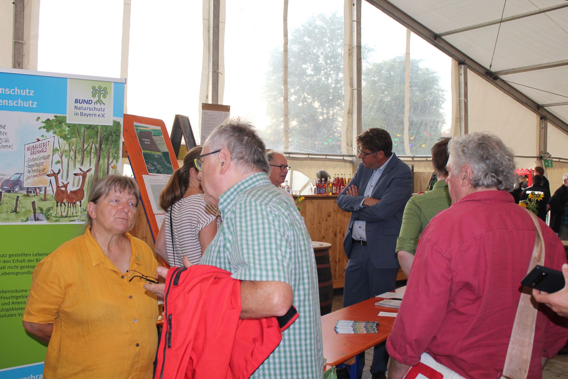 Katharina Schulze, unsere Spitzenkandidatin der Landtagswahl im Herbst, rockte gut gelaunt und energiegeladen das volle Weinzelt. Sie machte Stimmung, zog die anderen Gäste mit in ihren Bann und sprach bei ihrem Herzensthema Familienpolitik sicher vielen aus der Seele. Auch der Parlamentarische Staatssekretär im Wirtschaftsministerium, Michael Kellner, hatte sichtlich Spaß am Unterhaltungsprogramm, klatschte mit und sprach auf der Bühne viele wichtige Themen an. An den Infotischen zeigten sich beide sehr interessiert und auch im persönlichen Gespräch nahmen sie sich allen Anliegen an, welche an sie herangetragen wurden.