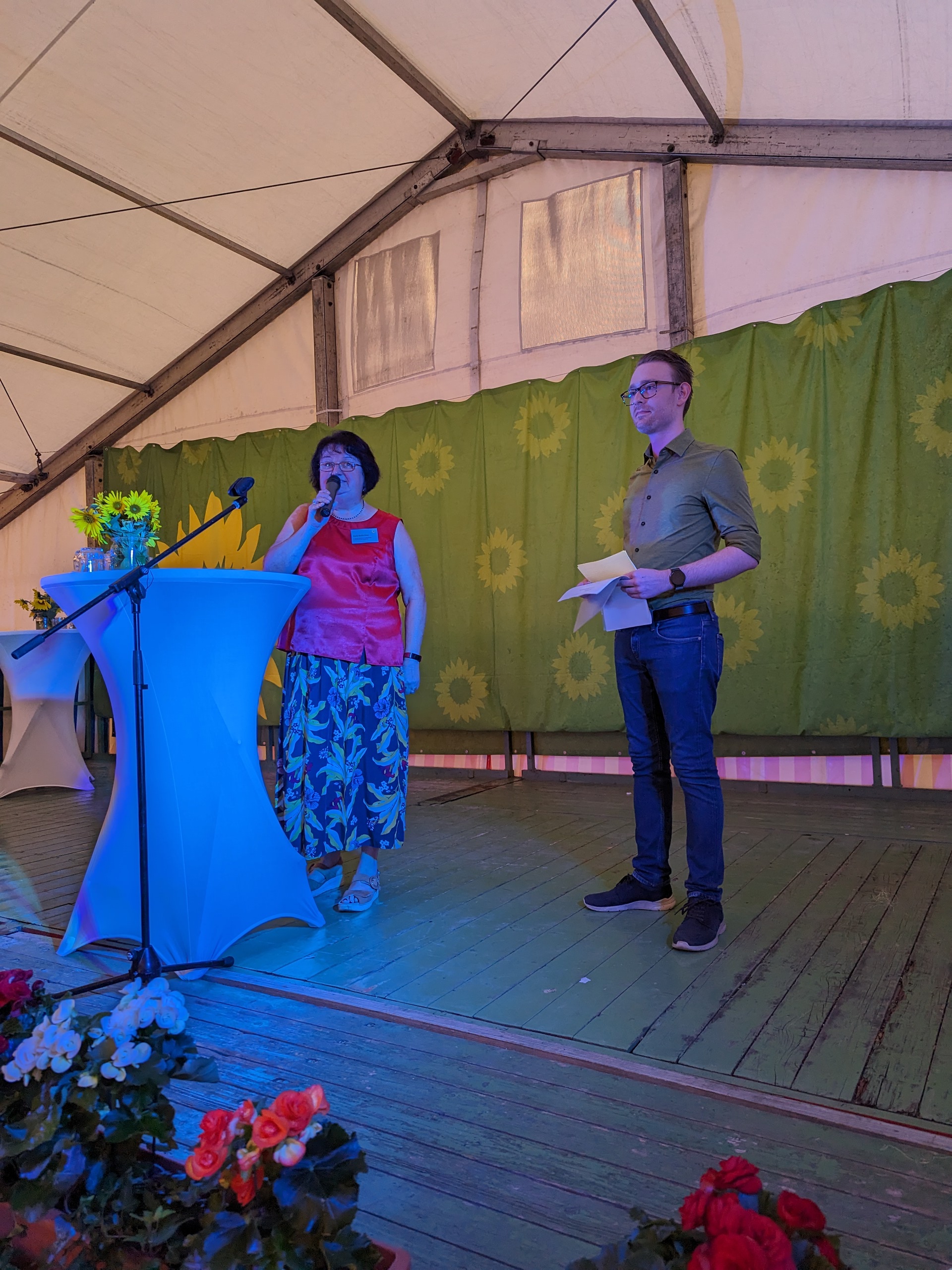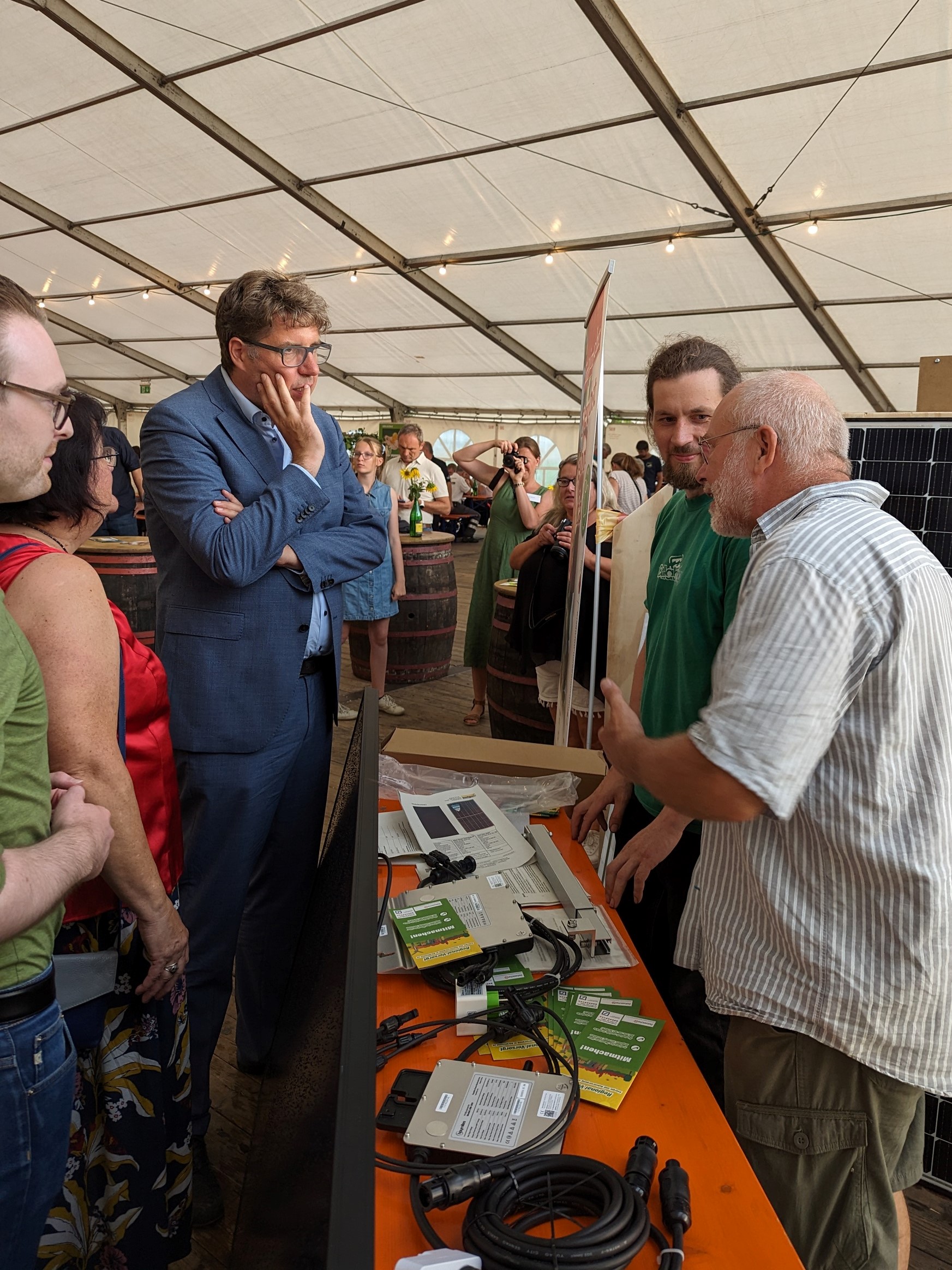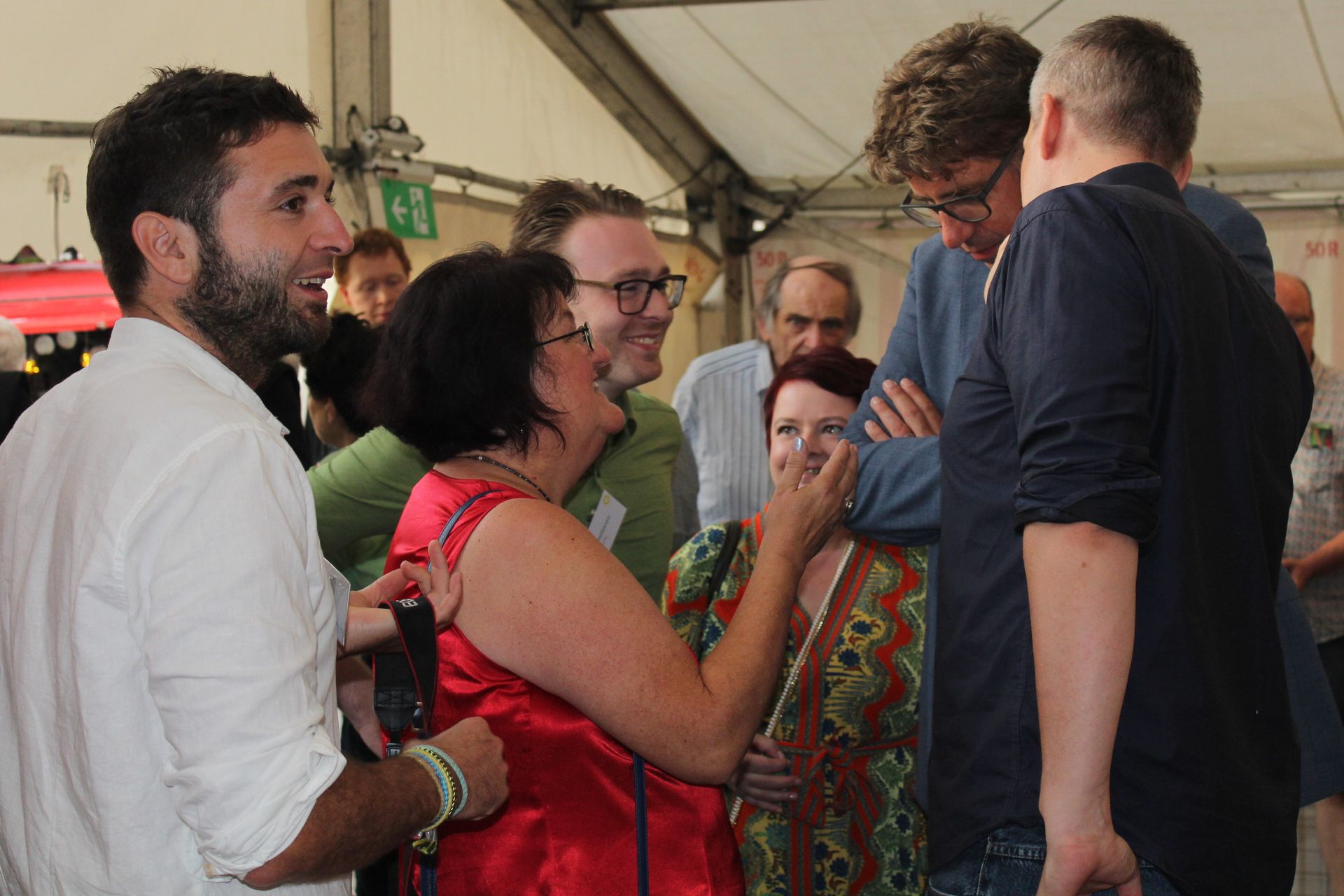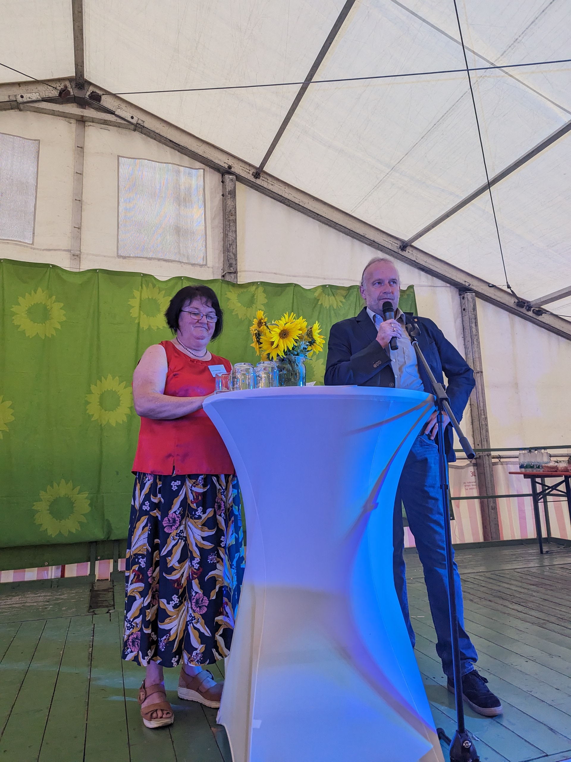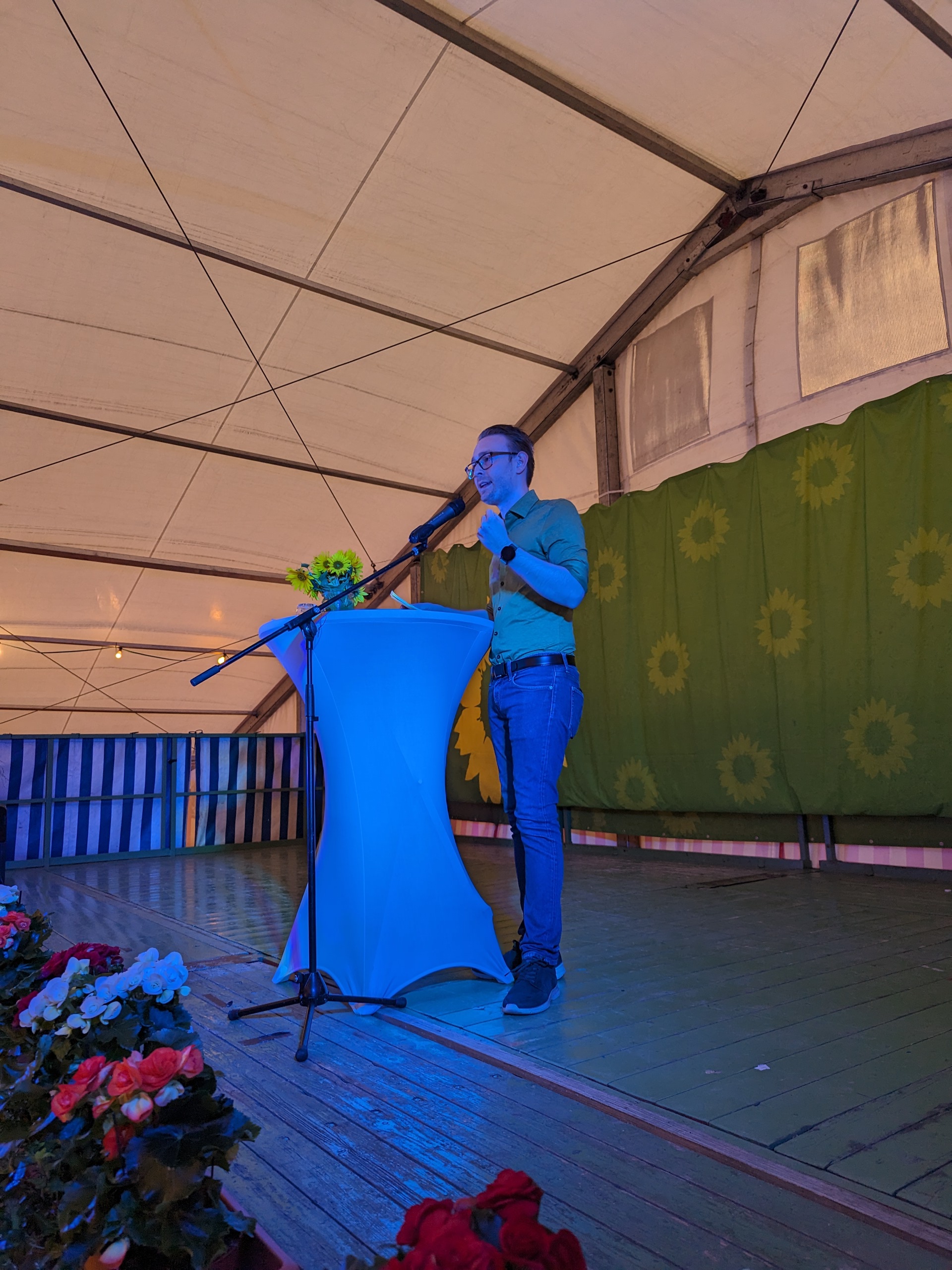 Katharina Schulze, unsere Spitzenkandidatin der Landtagswahl im Herbst, rockte gut gelaunt und energiegeladen das volle Weinzelt. Sie machte Stimmung, zog die anderen Gäste mit in ihren Bann und sprach bei ihrem Herzensthema Familienpolitik sicher vielen aus der Seele. Auch der Parlamentarische Staatssekretär im Wirtschaftsministerium, Michael Kellner, hatte sichtlich Spaß am Unterhaltungsprogramm, klatschte mit und sprach auf der Bühne viele wichtige Themen an. An den Infotischen zeigten sich beide sehr interessiert und auch im persönlichen Gespräch nahmen sie sich allen Anliegen an, welche an sie herangetragen wurden.