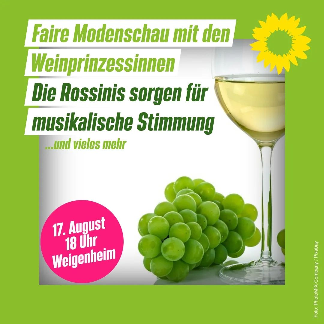 Für den passenden Rahmen sorgt die Musik der Rossinis, eine Modenschau mit fairer Mode durch die Weinprinzessin des Weinparadies Franken sowie verschiedene lokale Aussteller und natürlich ist auch für das leibliche Wohl bestens gesorgt.